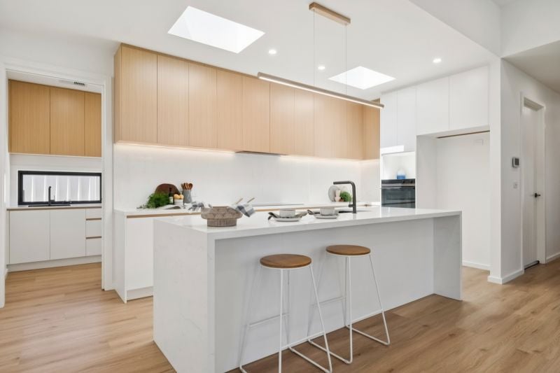 + 40mm Kitchen stone benchtops with waterfall edge and ample storage