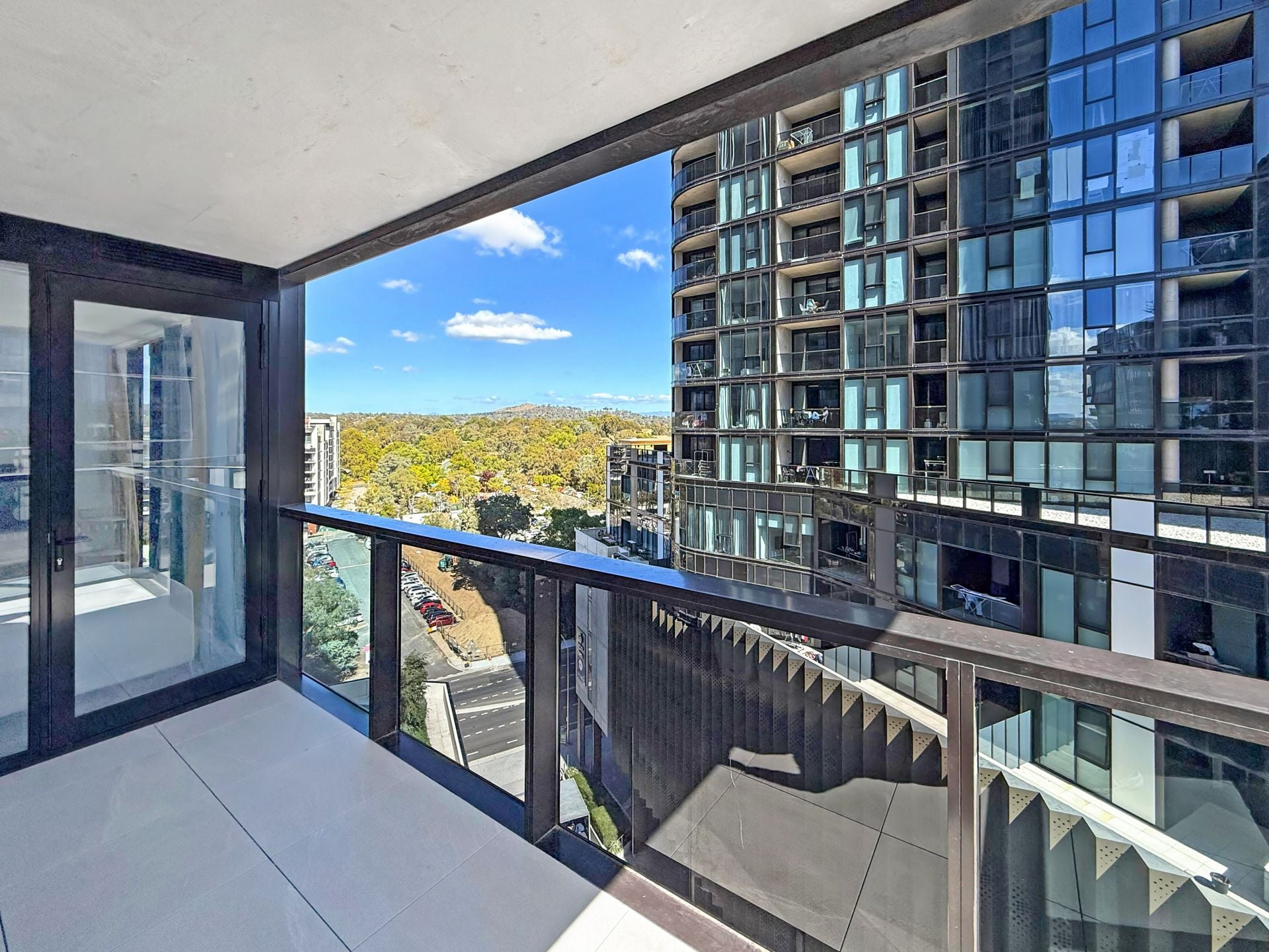 – Private balcony with sweeping district and water views