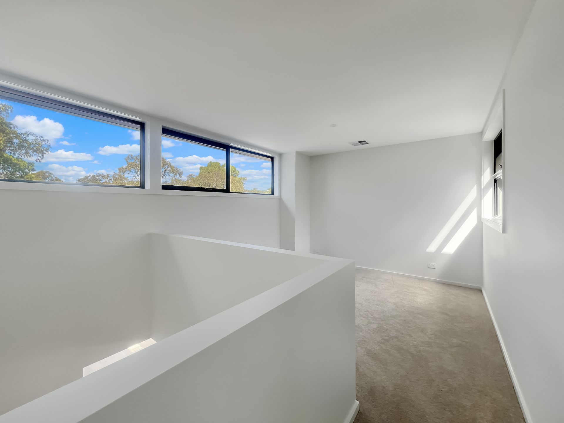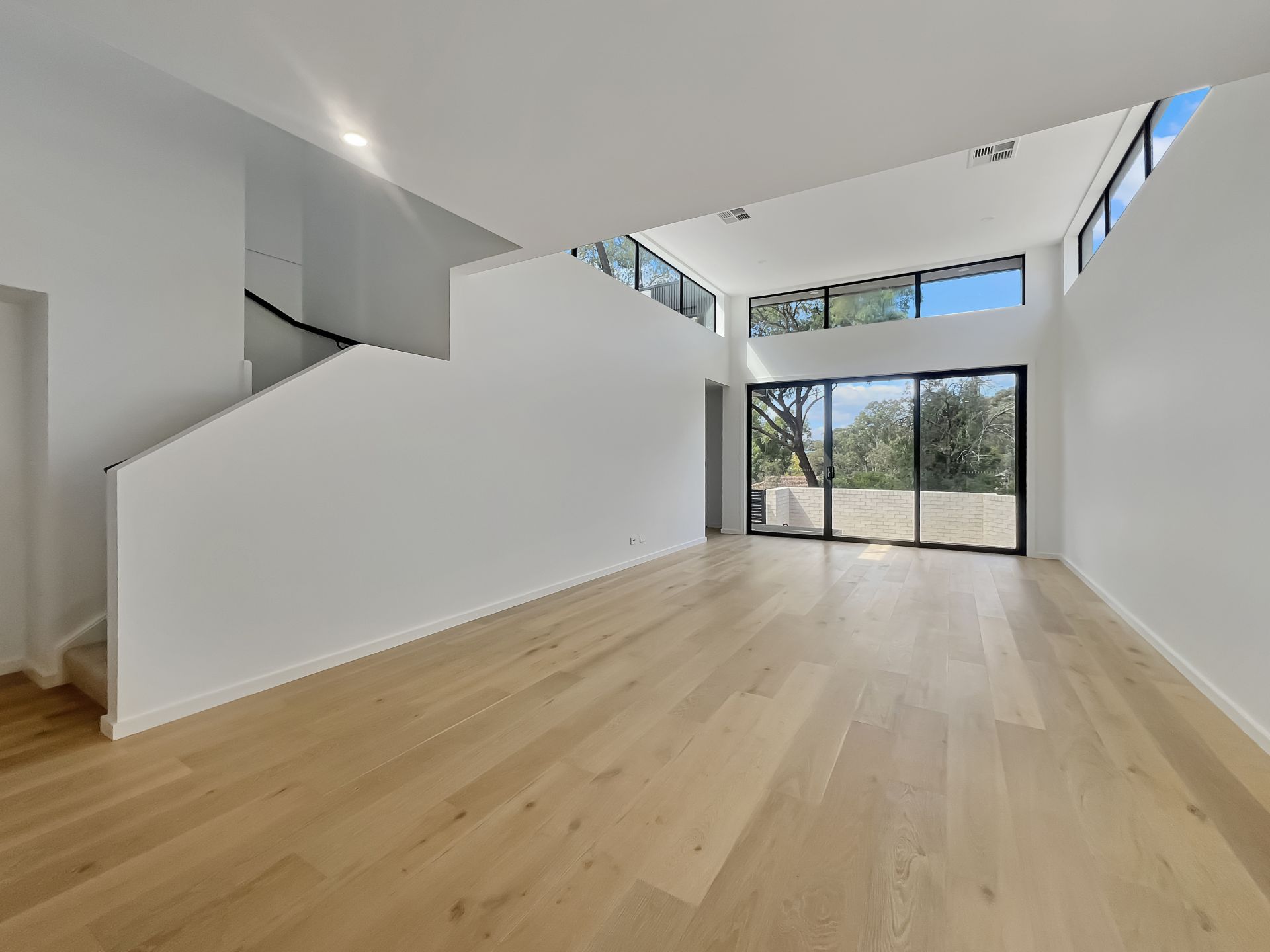– Open Plan Living: Bright and airy living space with high ceilings and large panoramic windows. Upstairs a second living space creates flexibility.
