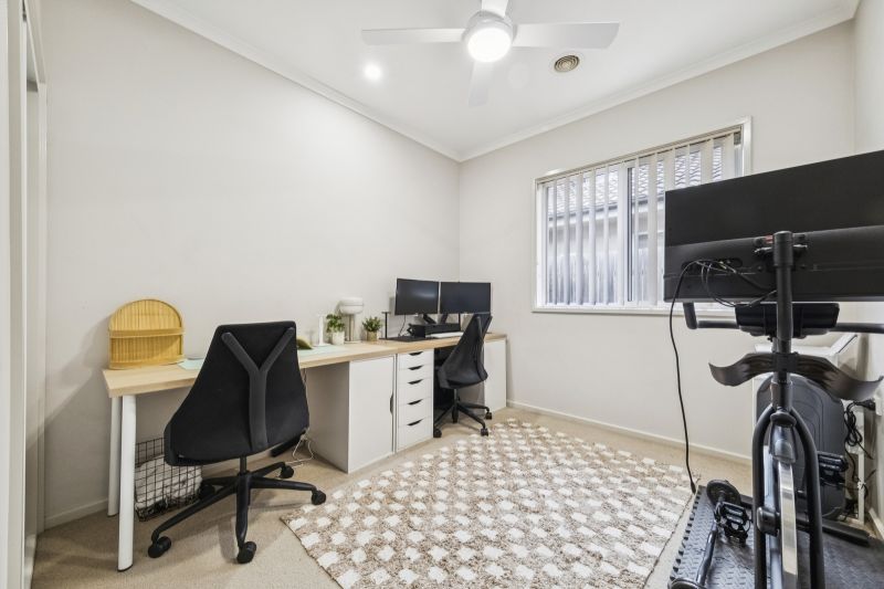 The contemporary façade sets a strong first impression, which continues inside. Entry is via a beautifully landscaped front courtyard, leading into the foyer and generously sized main bedroom-thoughtfully separated from the remainder of the home to ensure privacy. The main bedroom features a walk-in robe, ensuite, and a peaceful outlook over the courtyard. Two additional bedrooms include built-in robes.