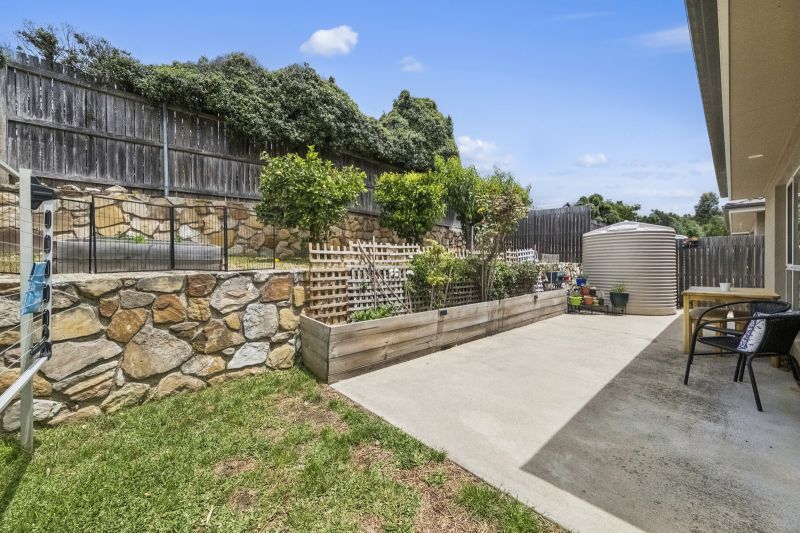 Outside, the private rear courtyard includes a lawned area alongside an elevated garden bed, providing an inviting space for outdoor enjoyment and gardening alike.