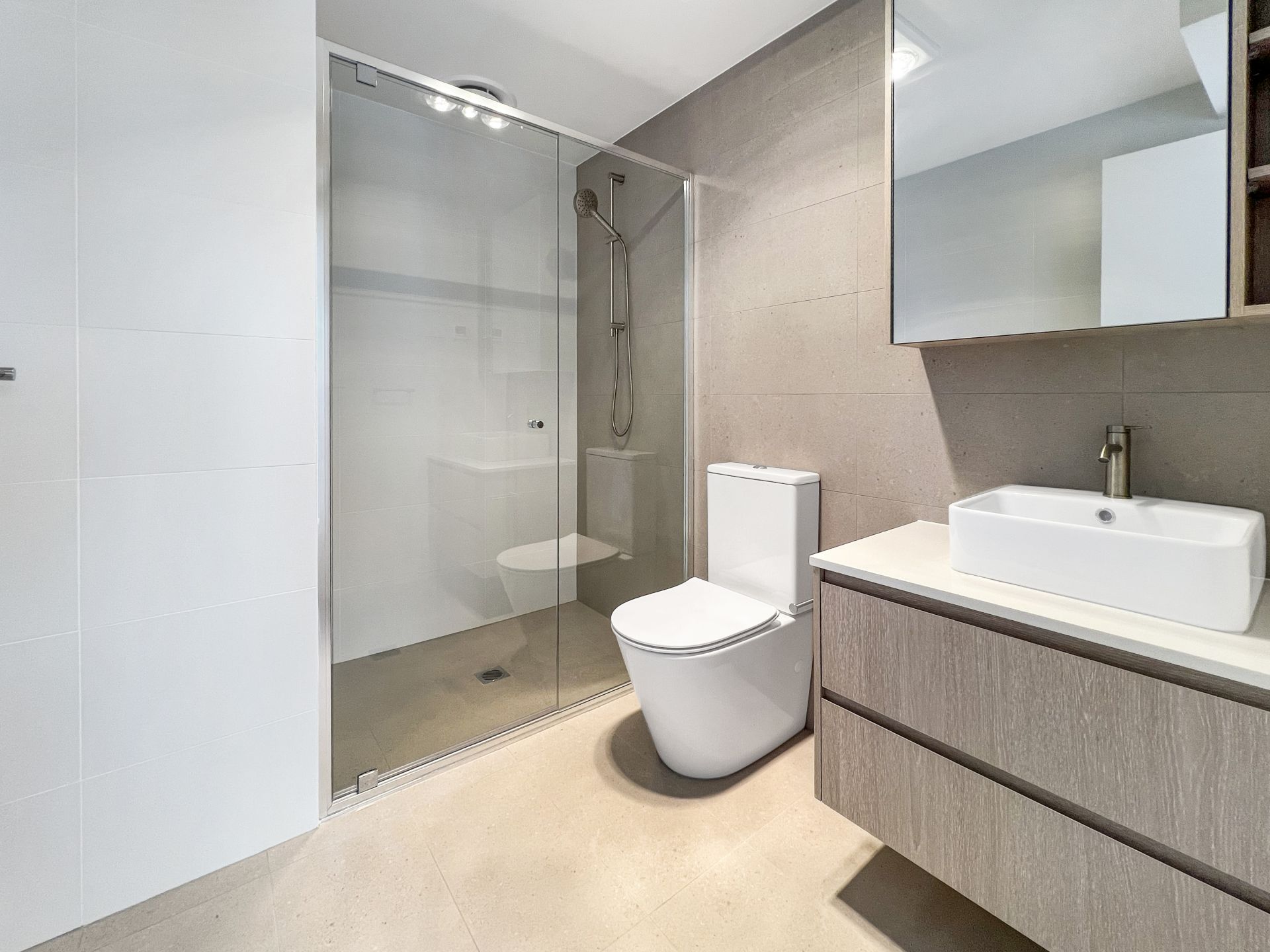– Floor to ceiling tiling to bathrooms