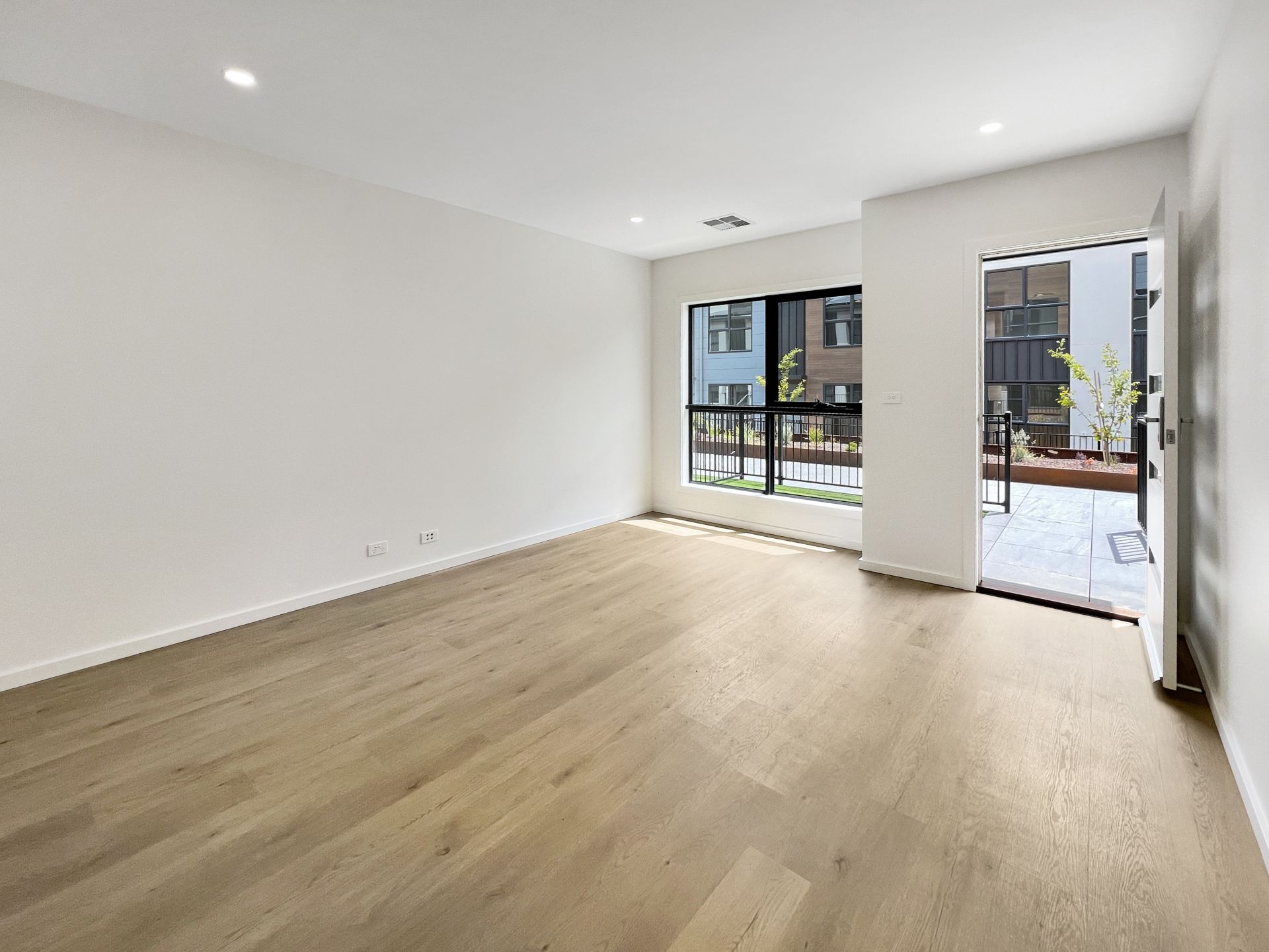 Downstairs offers a spacious living room with courtyard access, a flow through kitchen with separate dining area and rear courtyard access and a powder room.