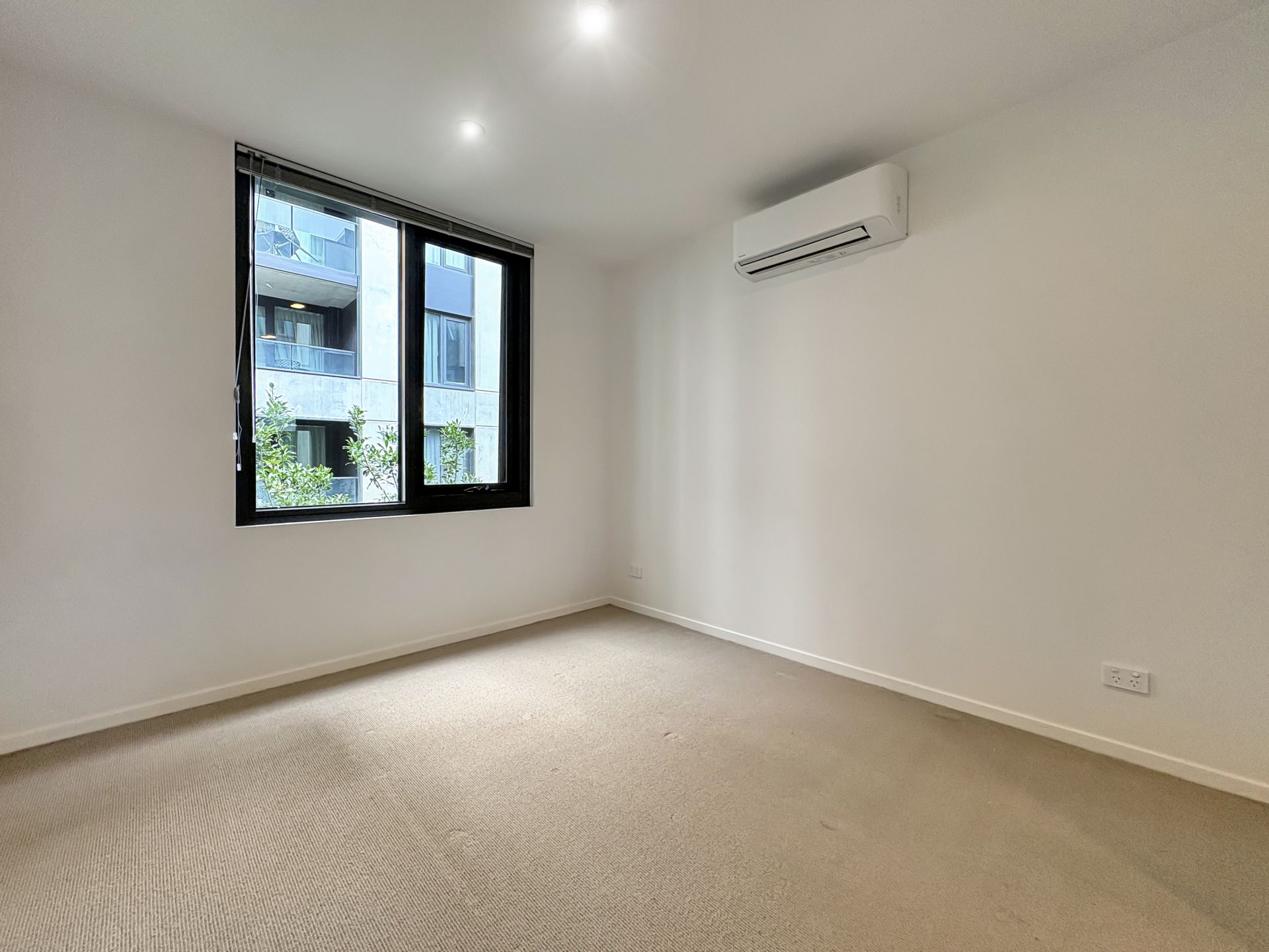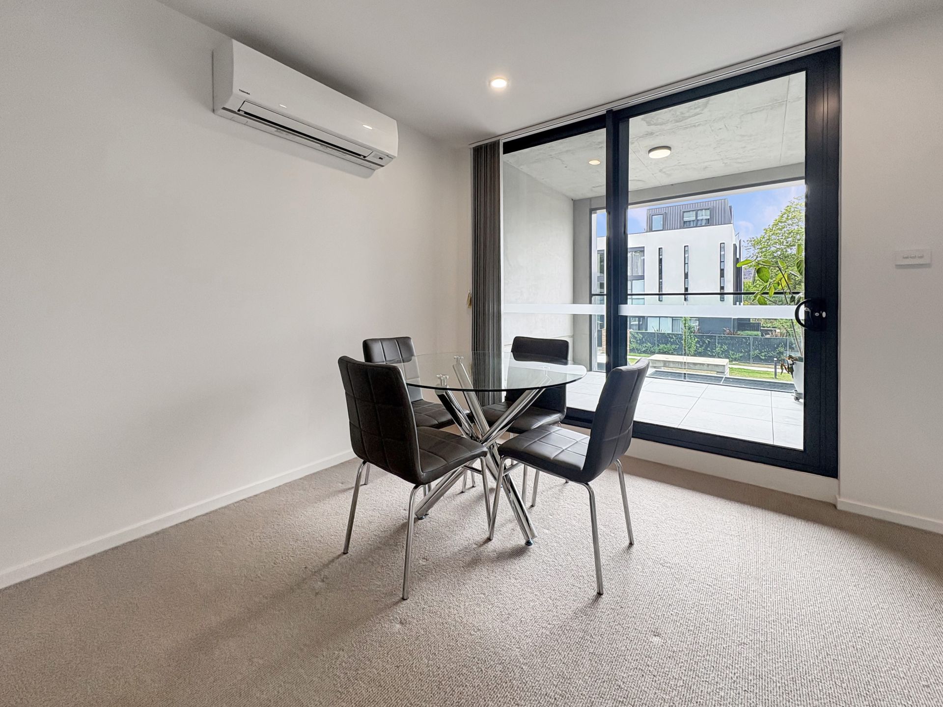 The home features a bright open-plan living and dining area flowing to a private balcony, perfect for relaxing or entertaining. Both bedrooms are generously sized and, along with the living area, are serviced by three split-system heating and cooling units for year-round comfort. The apartment is carpeted throughout and offers a warm, inviting feel.