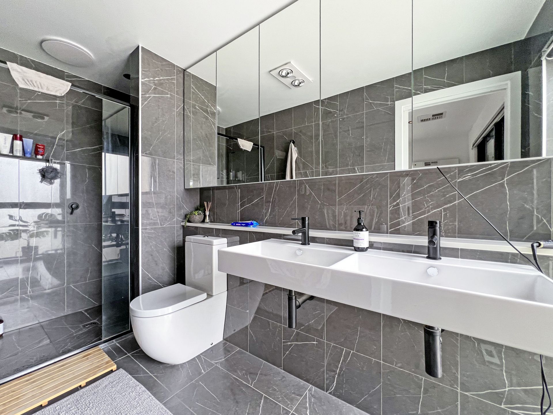– Main bedroom with walk-in robe, double vanity & covered balcony