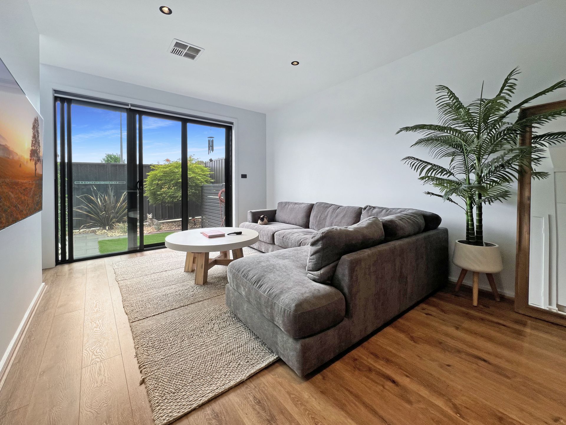 Downstairs, the home opens into a light-filled open-plan kitchen and living area, flowing seamlessly to a private courtyard. A separate toilet and dedicated laundry add extra functionality.