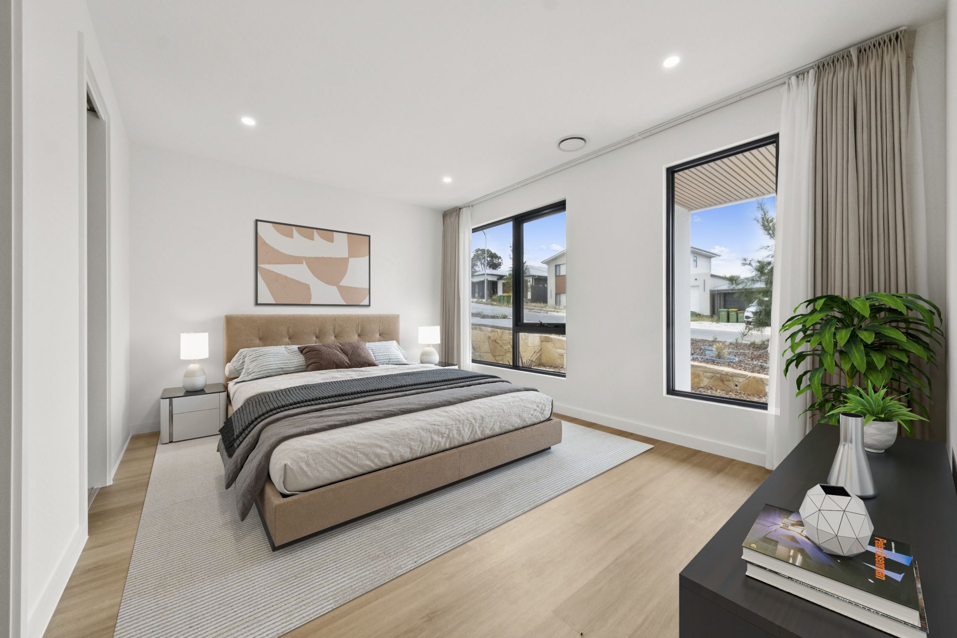 Outside, the alfresco area invites seamless indoor-outdoor entertaining, complemented by the levelled, low-maintenance garden. Comfort is assured year-round with zoned ducted reverse cycle heating and cooling. The home’s practicalities extend to 2.34m height doors, video intercom, a smart door lock, and double-glazed windows with quality coverings.