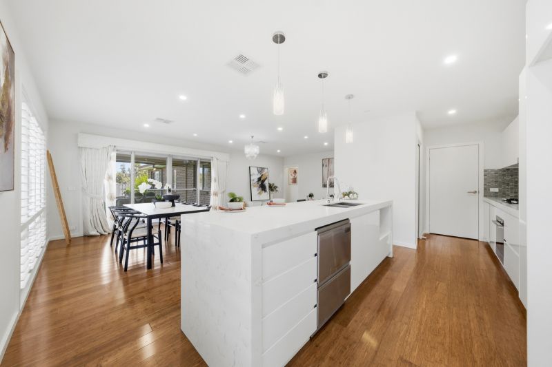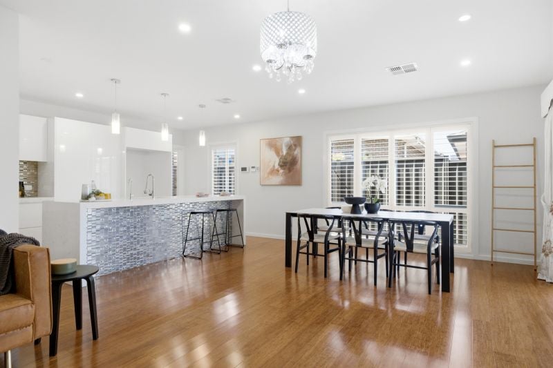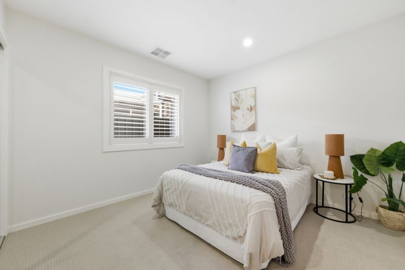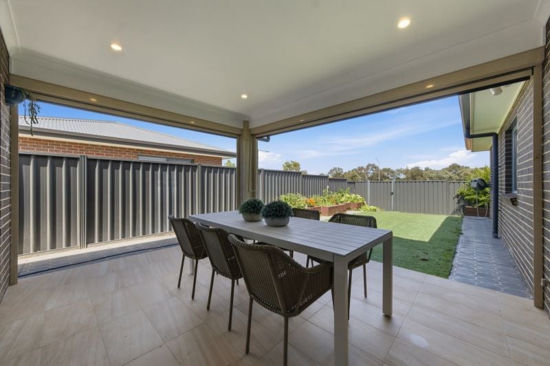 Beyond the interiors, the outdoor alfresco area invites relaxation or social gatherings, while the low-maintenance synthetic turf backyard allows more time for enjoyment and less for upkeep. The home is complete with a large laundry, ducted reverse cycle heating and cooling with three zones, double-glazed windows with plantation shutters, and a suite of security enhancements including video intercom and smart door lock.