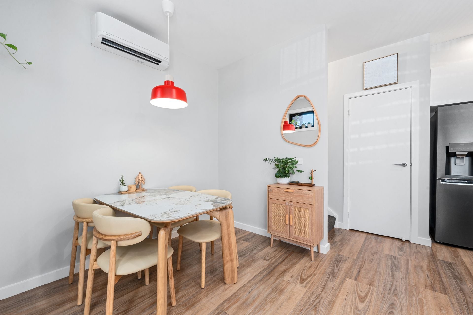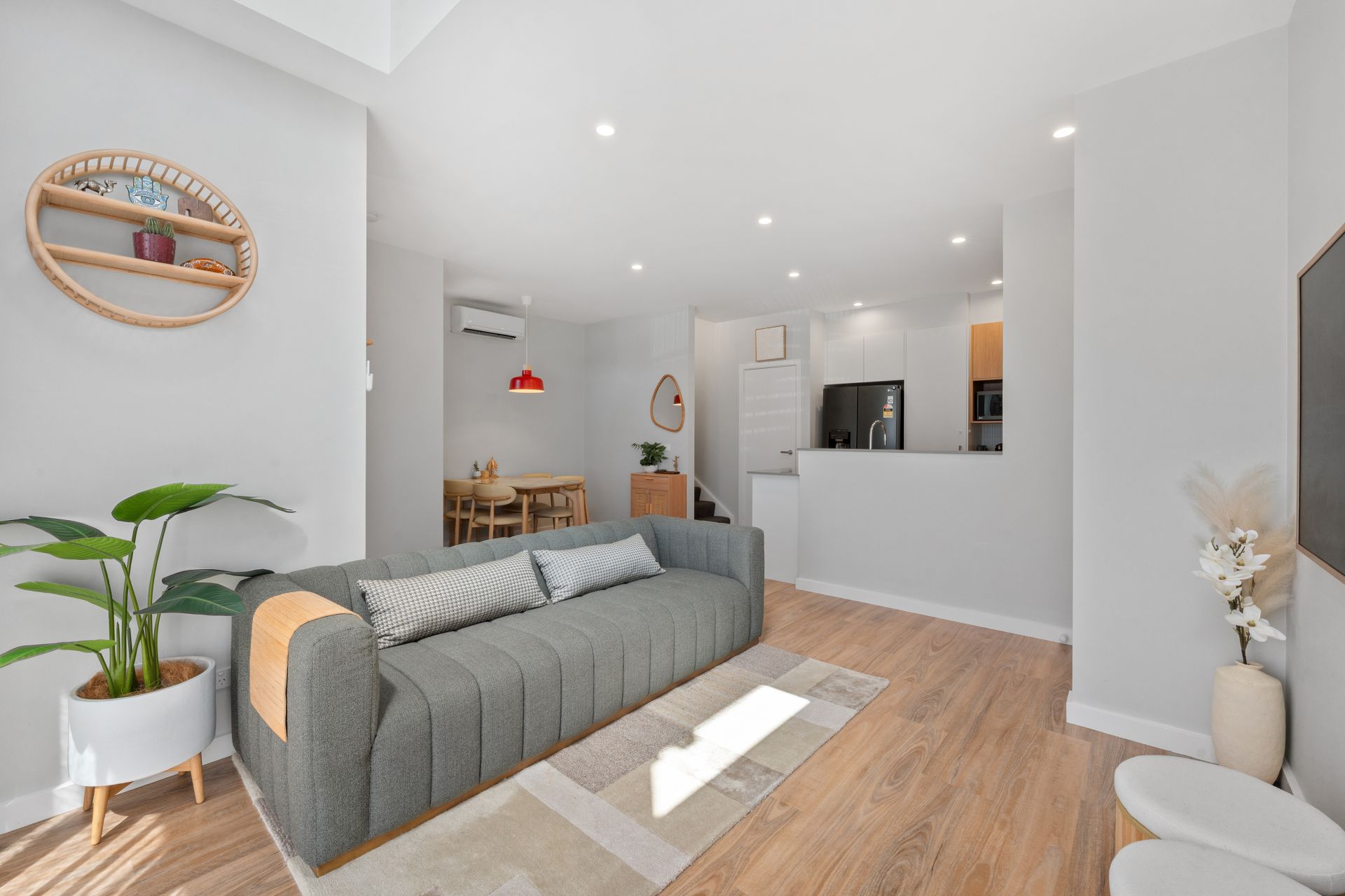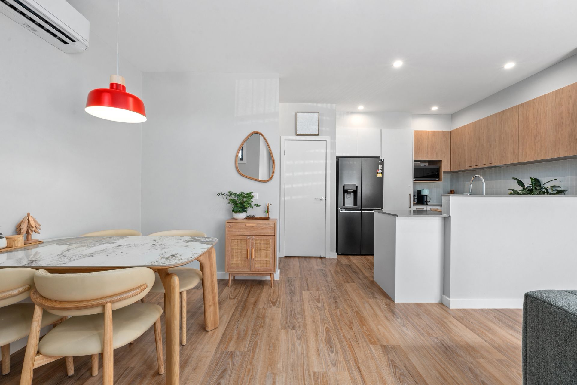 Outside, a neat front courtyard provides a private space to unwind, with sliding door access from the living room for seamless indoor-outdoor flow.