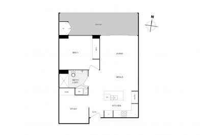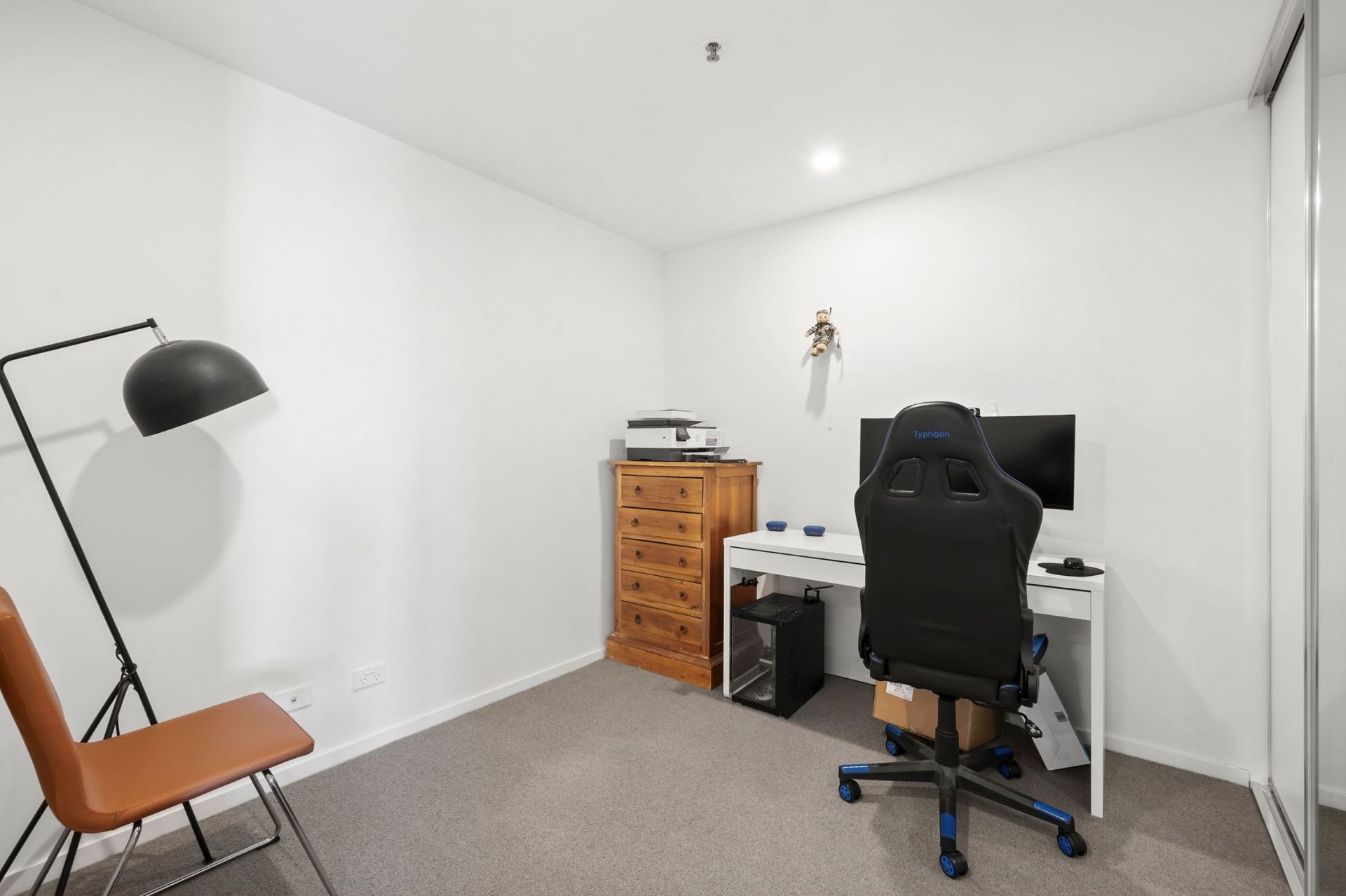 The large bedroom is flooded with natural light through floor to ceiling double-glazed windows and includes built-in robes and direct balcony access. A separate, generously sized study/multipurpose room provides excellent flexibility for working from home or accommodating guests.