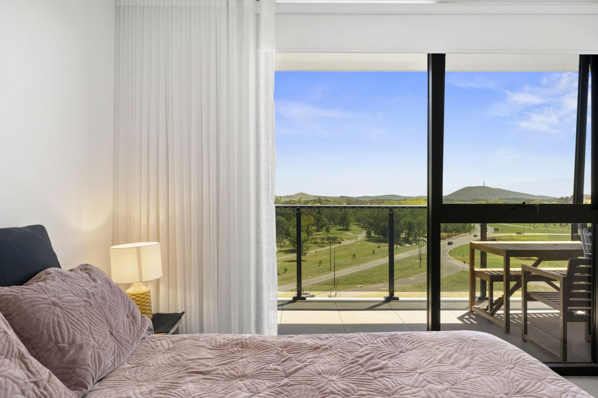North facing one bedroom plus study with sweeping views, Set high on level 7, this beautifully appointed apartment captures views across the Arboretum, Black Mountain and the Woden Valley. The spacious open plan living and dining area flows seamlessly to a 17m² balcony ideal for entertaining or simply soaking in the outlook.