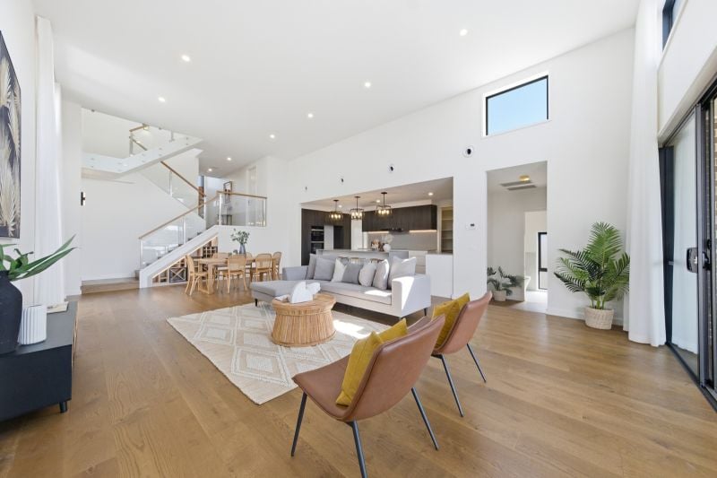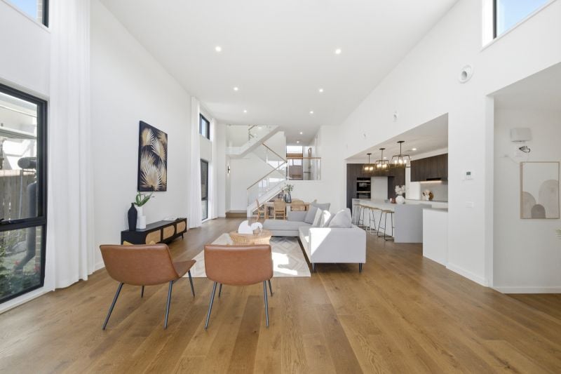 + Tremendous light-filled open plan living and dining area with 4.6m high ceiling and electric highlight windows