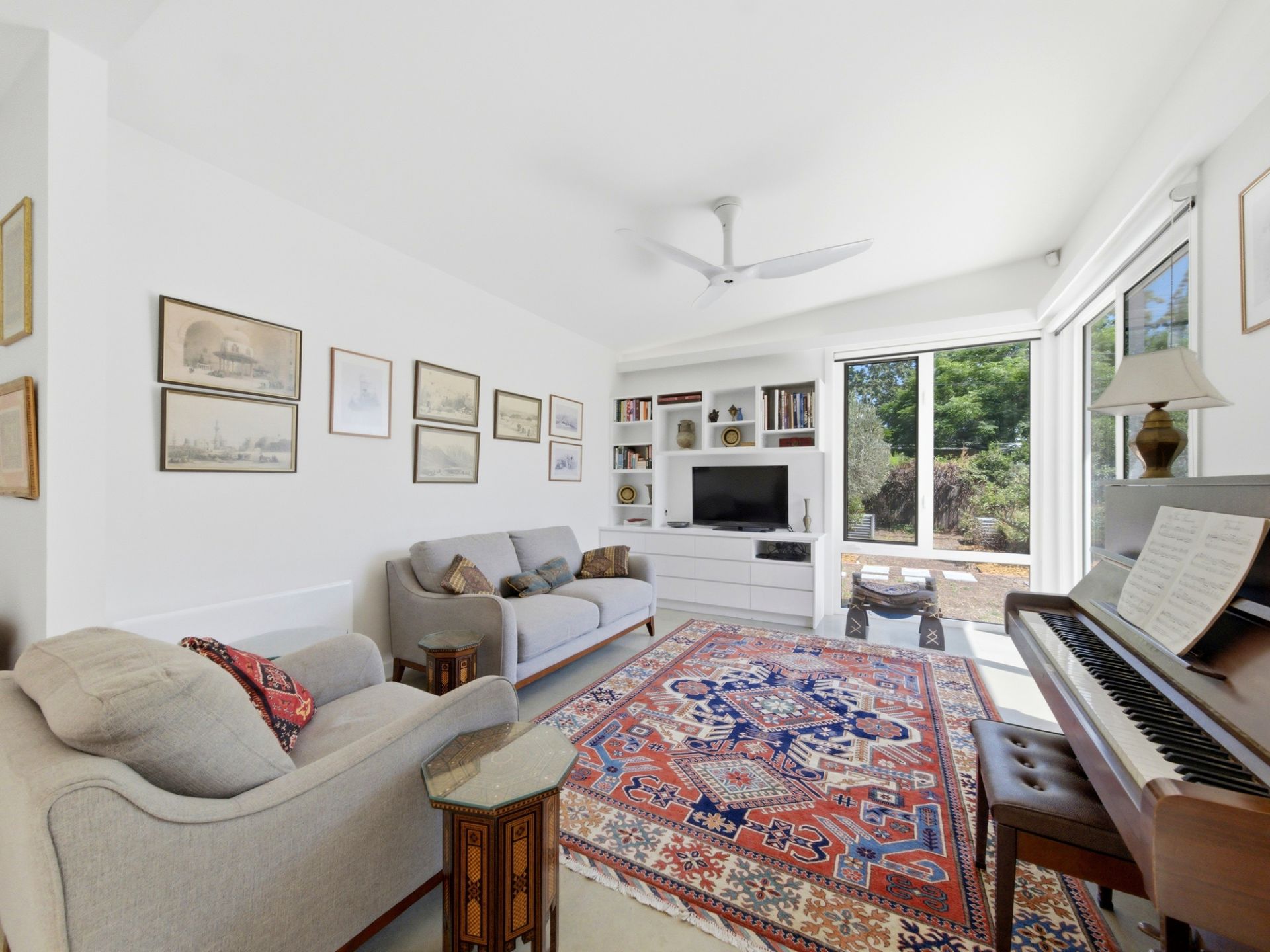 Outside, established gardens frame a private, leafy outlook, enhancing the home’s sense of tranquillity and connection to nature.