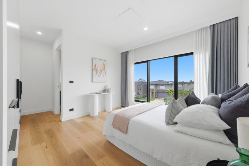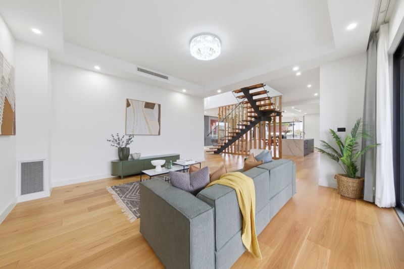 Commanding an elevated presence in one of Throsby’s most prestigious enclaves, this palatial five-bedroom, five-bathroom residence stands as a definitive statement in modern luxury. From the moment of arrival, the home asserts its scale through a breathtaking 6.0-meter entrance void and a striking steel-spine open riser staircase framed by glass balustrades. This sense of verticality is maintained throughout the residence, with soaring 3.0-meter ceilings downstairs and 2.7-meter ceilings upstairs, creating an atmosphere of boundless light and air that distinguishes it from the ordinary.