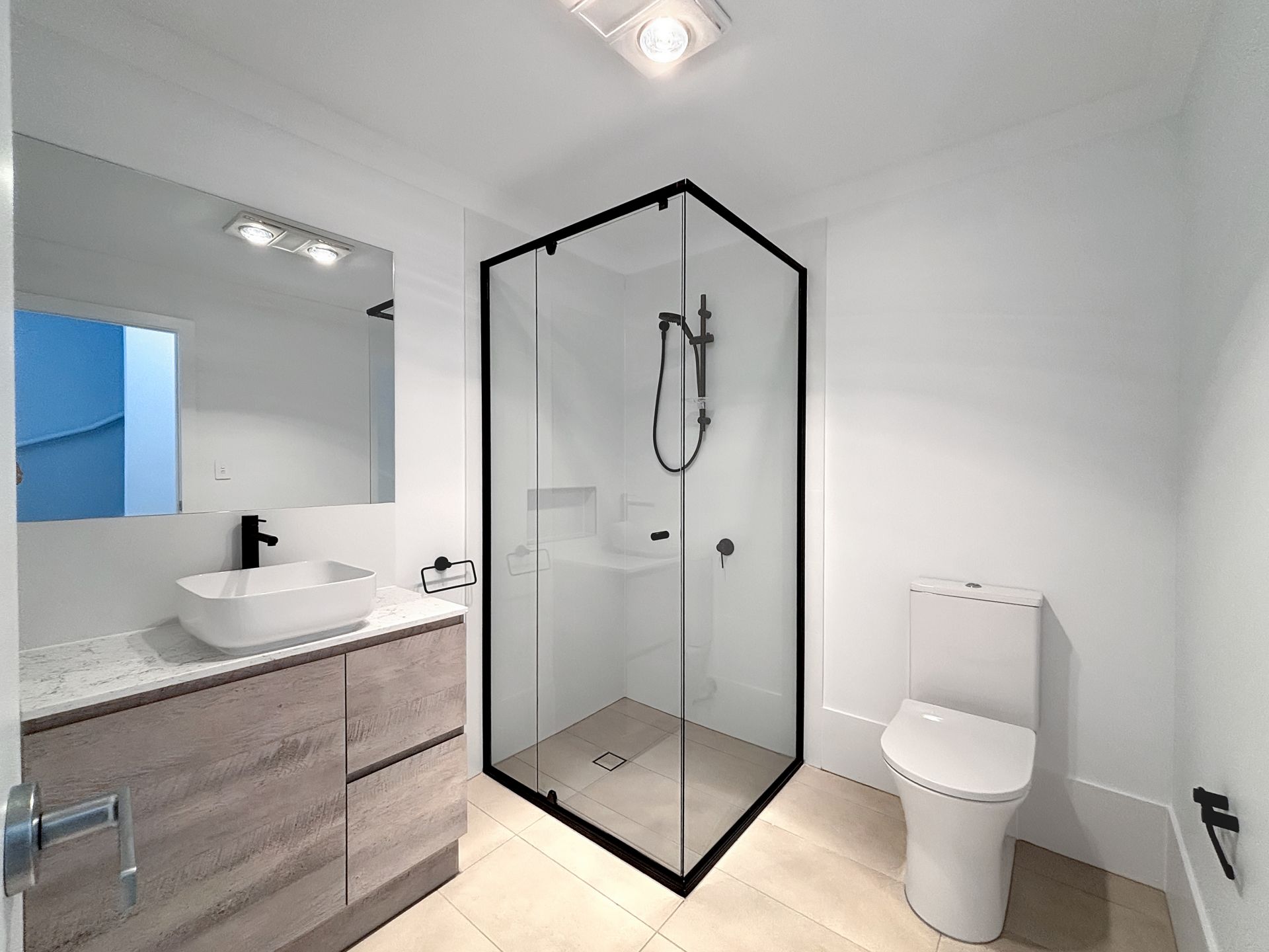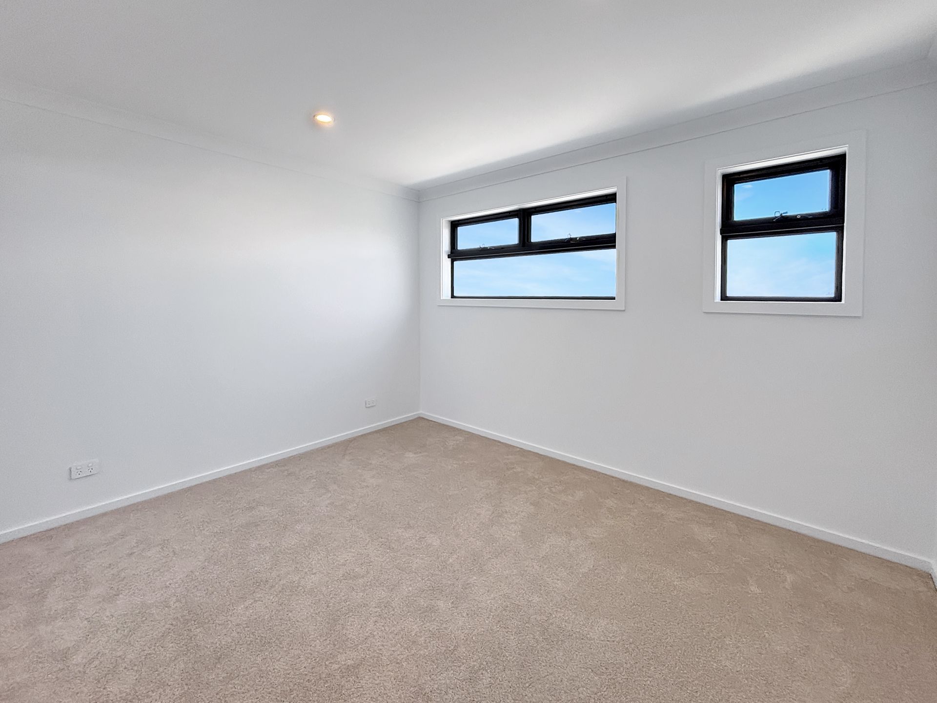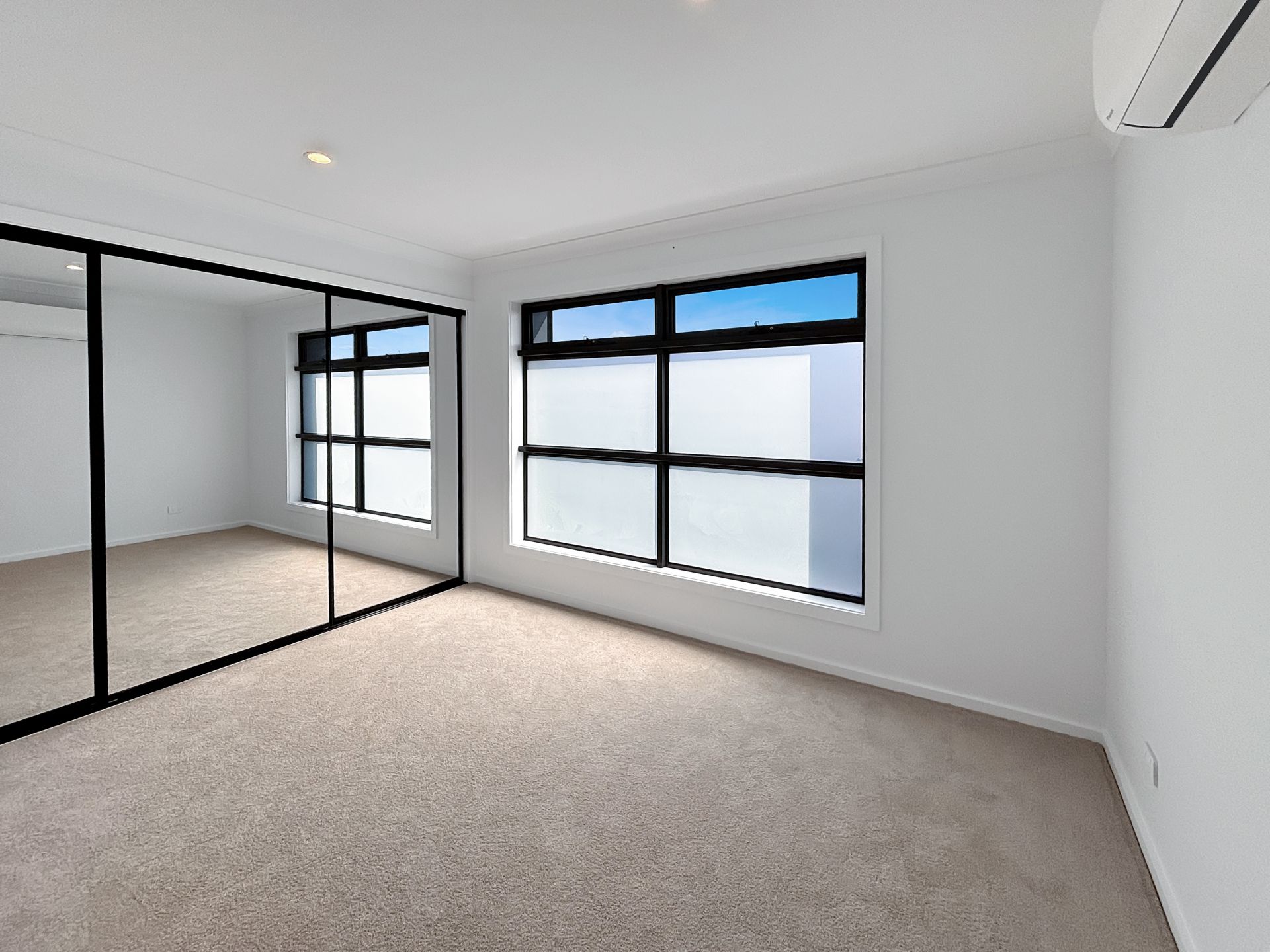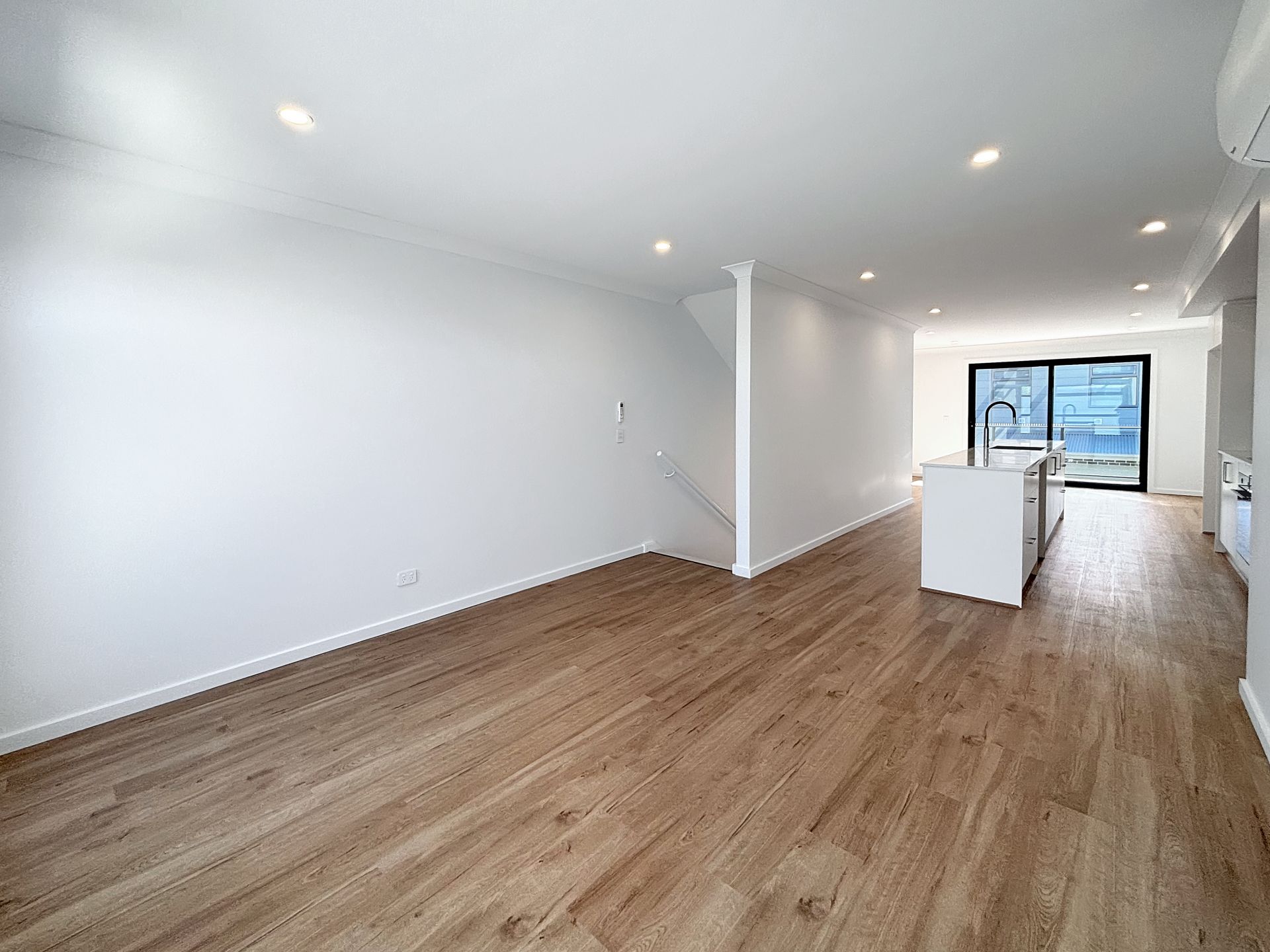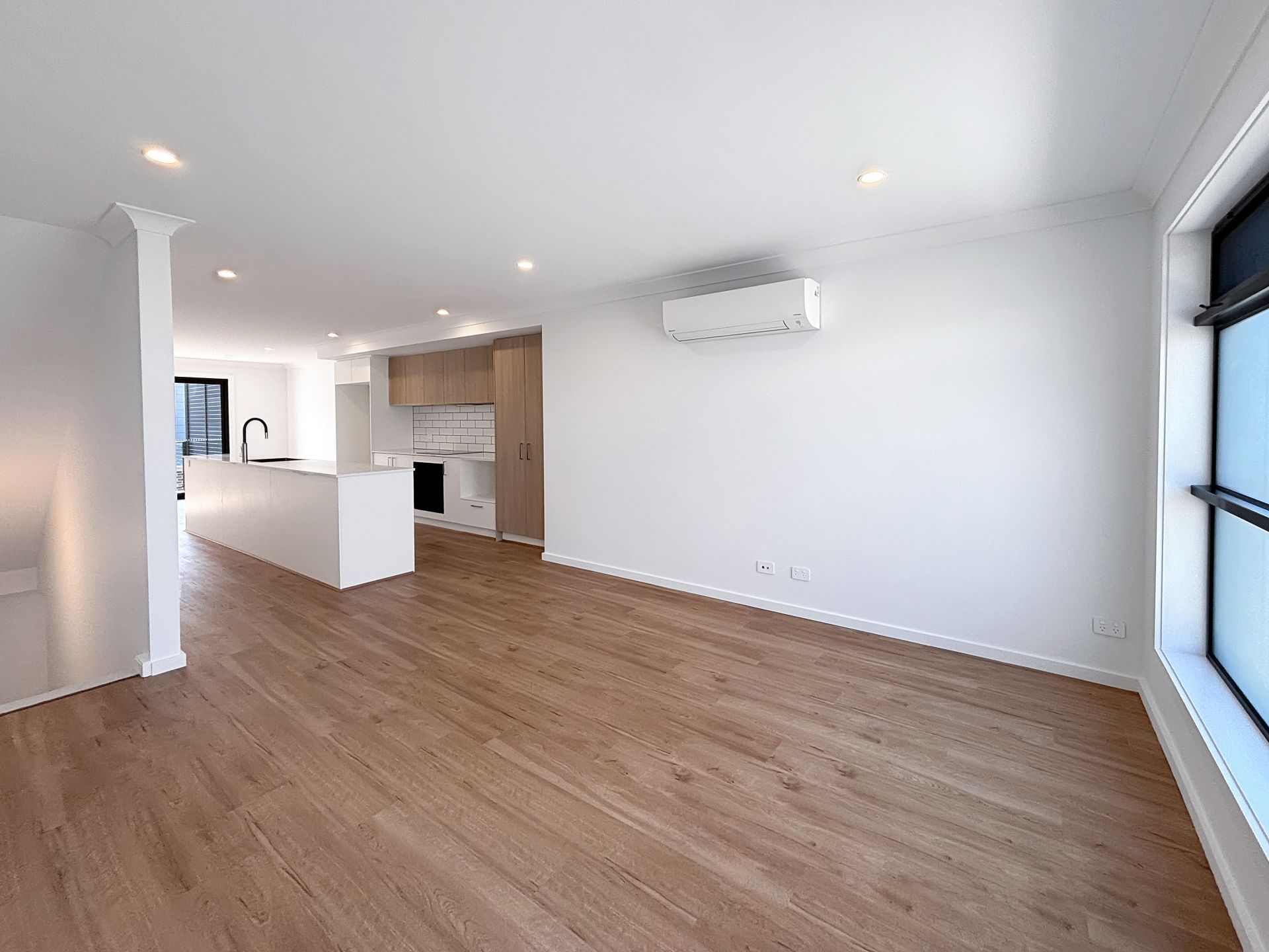 On the middle level, the heart of the home features a light-filled open-plan kitchen, dining, and living area. This space extends seamlessly onto a balcony, providing the perfect setting to enjoy your morning coffee or unwind in the evening. Includes split system air conditioning unit which ensures year-round comfort throughout this central living zone.