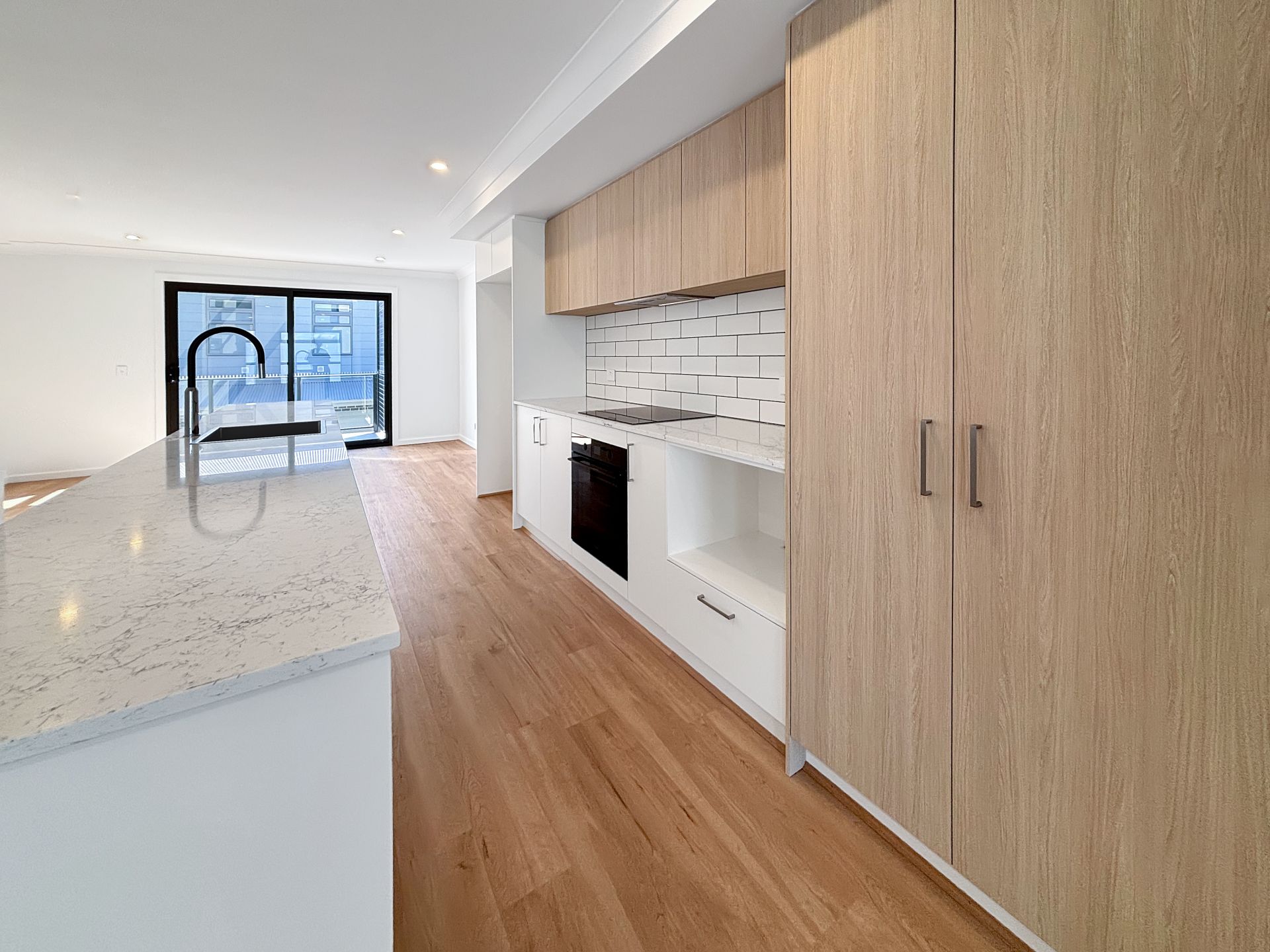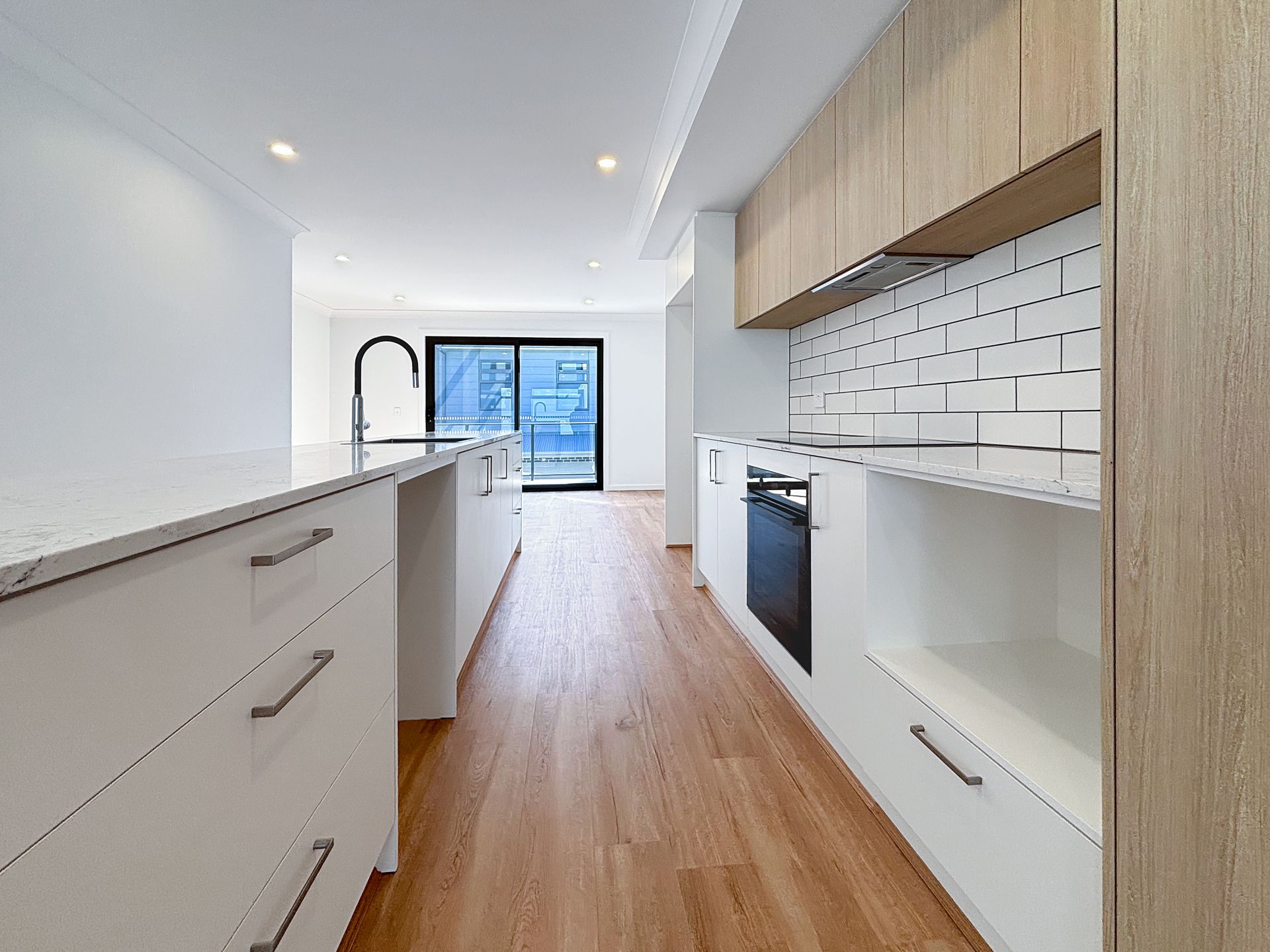 • Contemporary kitchen with stone benchtops, electric cooking, and dishwasher