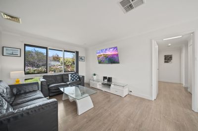 The beautifully renovated kitchen is both stylish and practical, featuring wraparound stone benchtops, modern appliances and generous cupboard space. Three good-sized bedrooms each include wardrobes, while the sleek, renovated bathroom impresses with full-height tiling, contemporary fixtures, a bathtub and the convenience of a separate toilet.