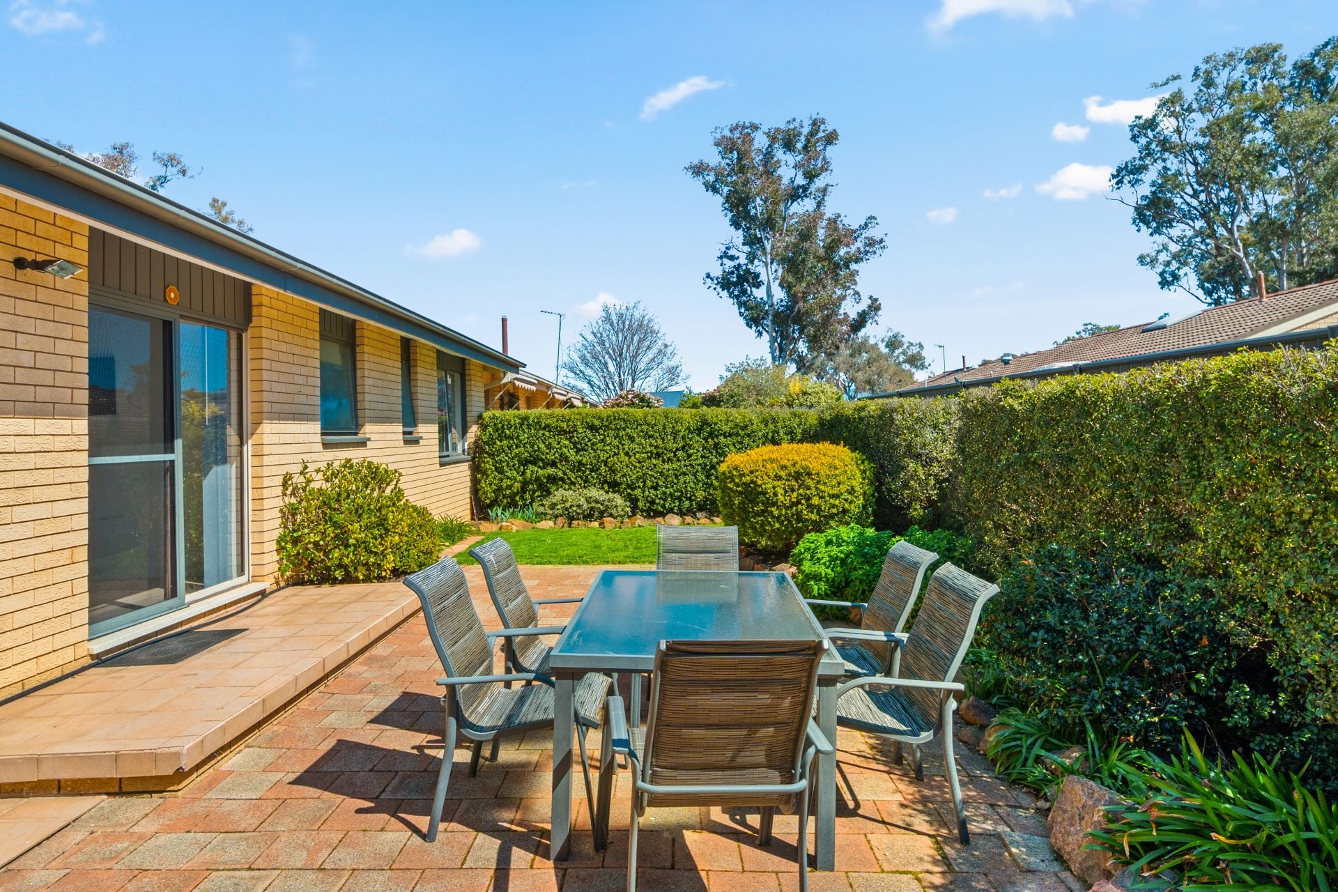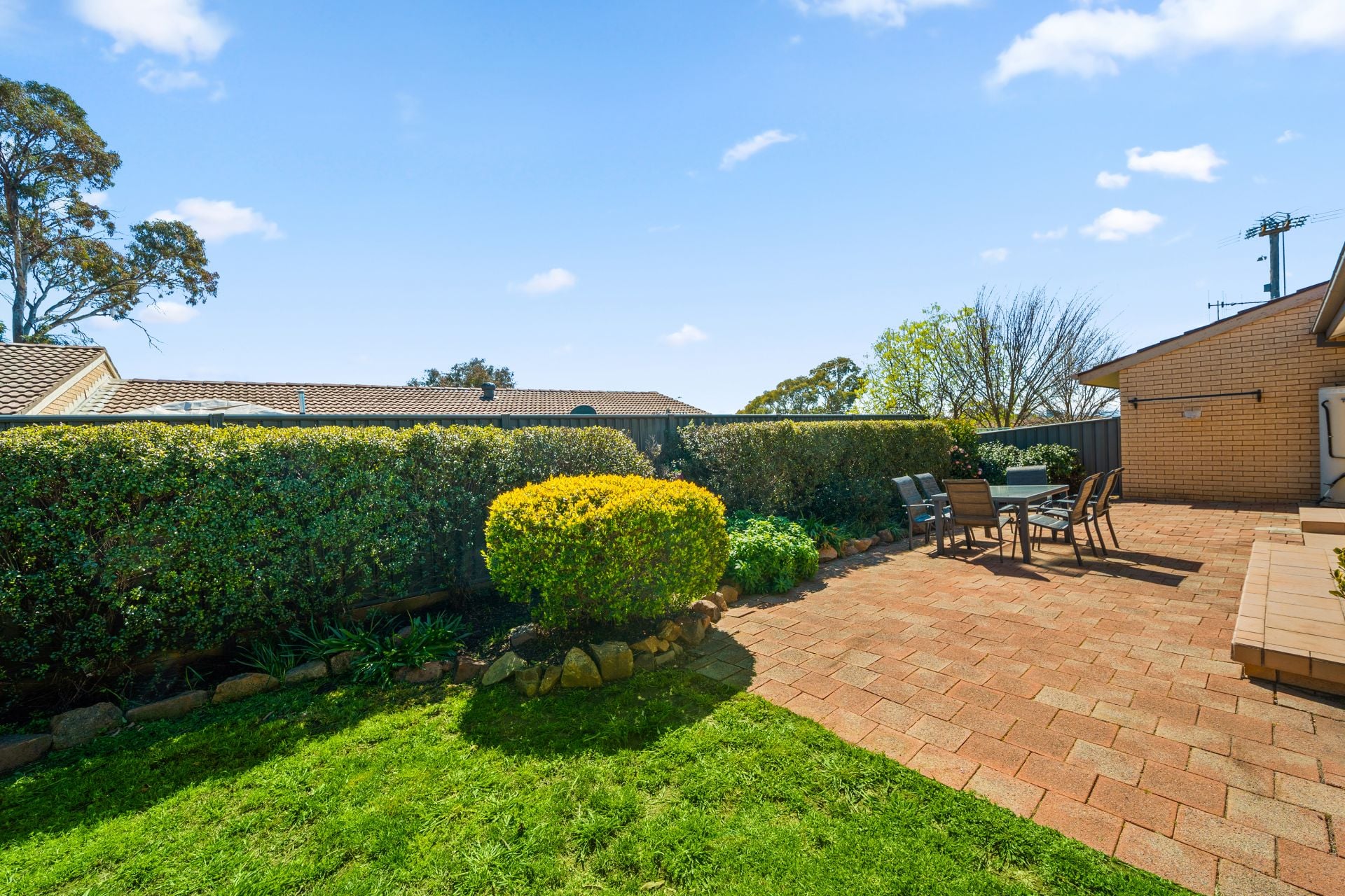 + Fully fenced backyard with paved patio, beautiful hedging and lawn