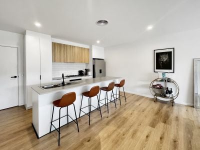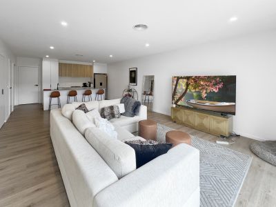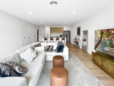 The heart of this home is its open-plan living and dining area, where beautiful floorboards create an inviting and stylish ambiance. The modern kitchen is also equipped with high-end appliances and ample storage, making it a pleasure to cook and entertain.