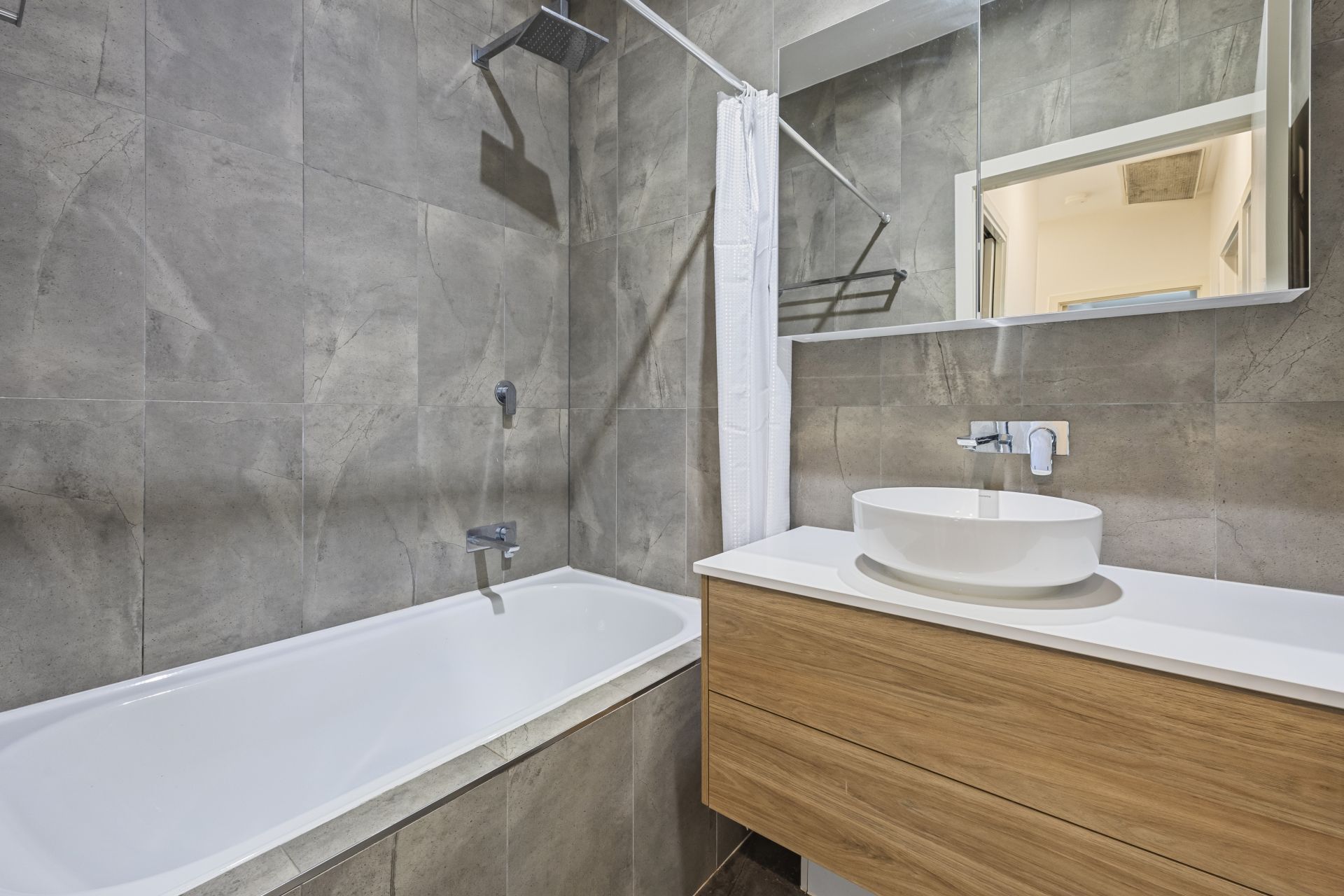 Each of the three bedrooms includes built-in robes, while the master bedroom features a private ensuite. The main bathroom offers a sleek design with a full-sized bathtub for relaxing after a long day.