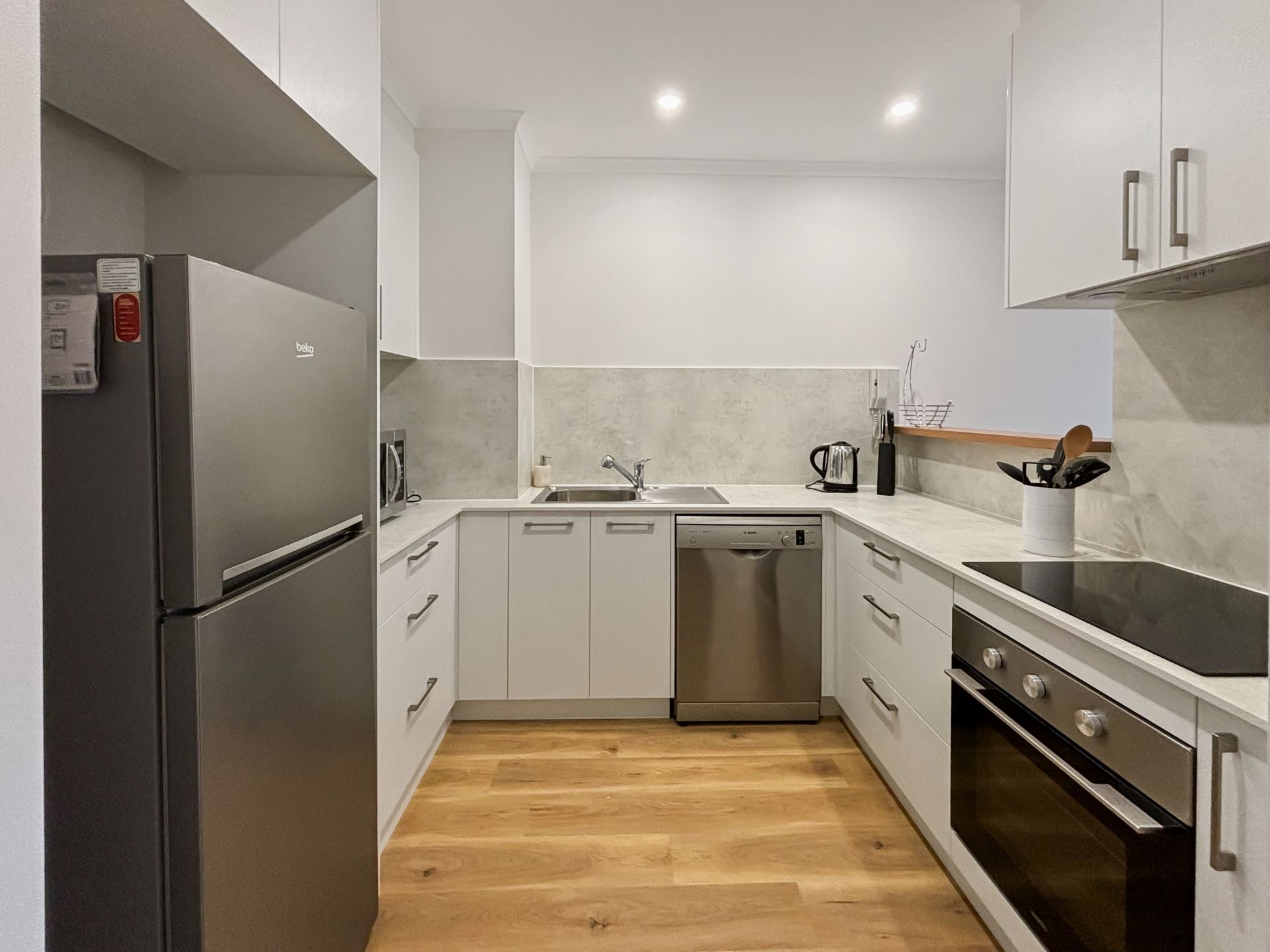 Fully Equipped: The all-electric unit comes complete with all furnishings (including new lounge) and appliances, including a dishwasher and a separate large laundry.