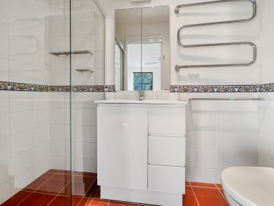 The first floor houses the light-filled master bedroom, ensuite and the conveniently-located balcony encouraging more time for relaxation as you sip your coffee whilst overlooking the beautiful streetscape and the courtyard garden. The second bedroom is also located on this level.