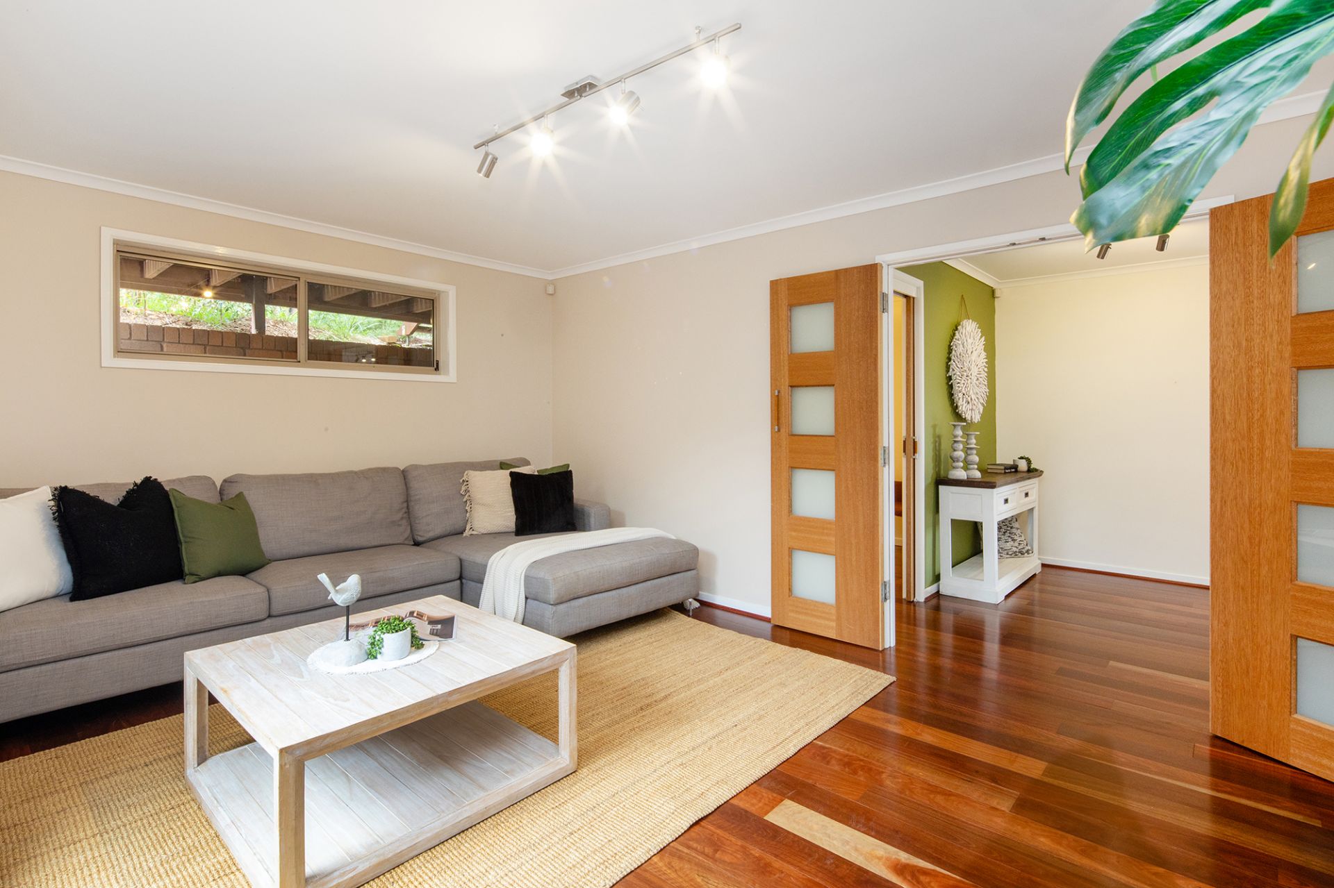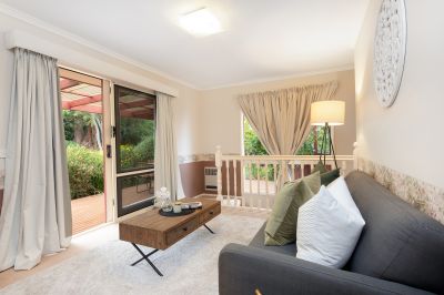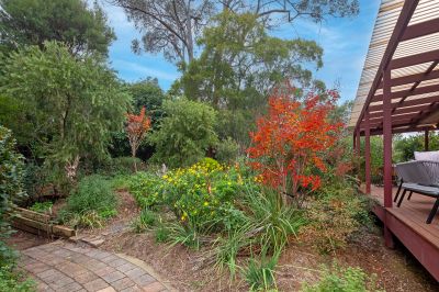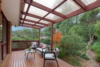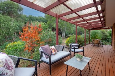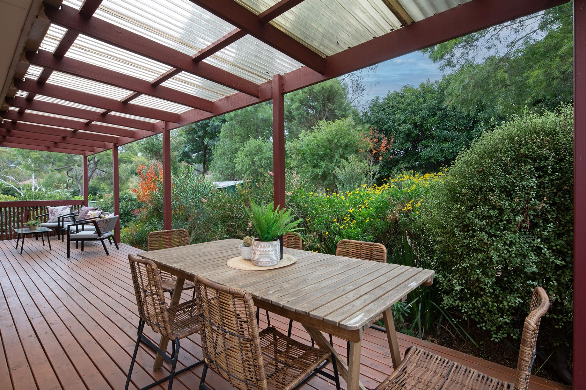 Entertain alfresco-style on the covered north-facing deck, overlooking the mature cottage-style native gardens beyond, which feel like your own curated piece of the bush. With plenty of room to unwind and soak up the sunshine, you'll relish the tranquillity of your outdoor oasis. Beyond the deck, discover a huge private north-facing paved entertaining area accessible from the main living areas, ideal for hosting gatherings or enjoying leisurely weekends with loved ones.