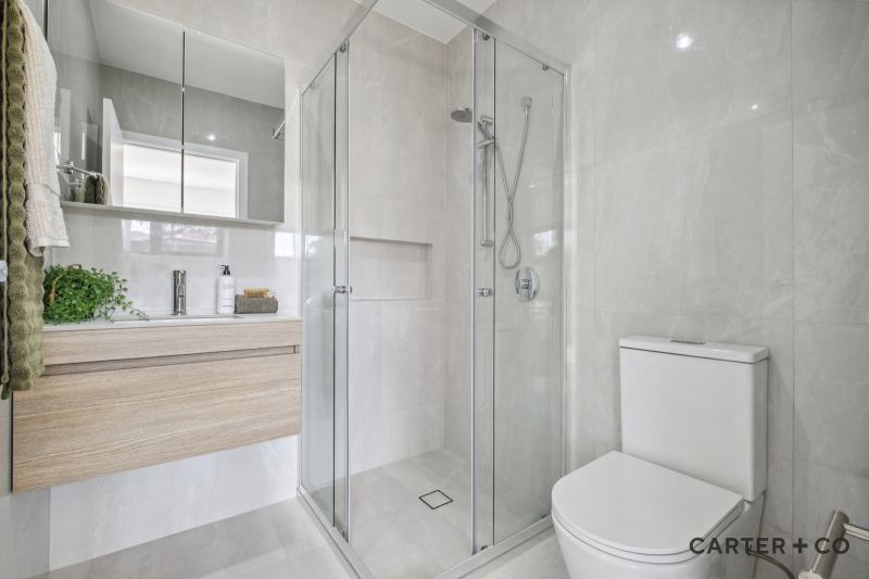 The beautifully landscaped low-maintenance garden is a serene backdrop to the home, and large sliding doors allow the living space to flow effortlessly to the outdoor area, backing onto a picturesque reserve. This exquisite abode benefits from a high raked ceiling that enhances the sense of space and light throughout.
