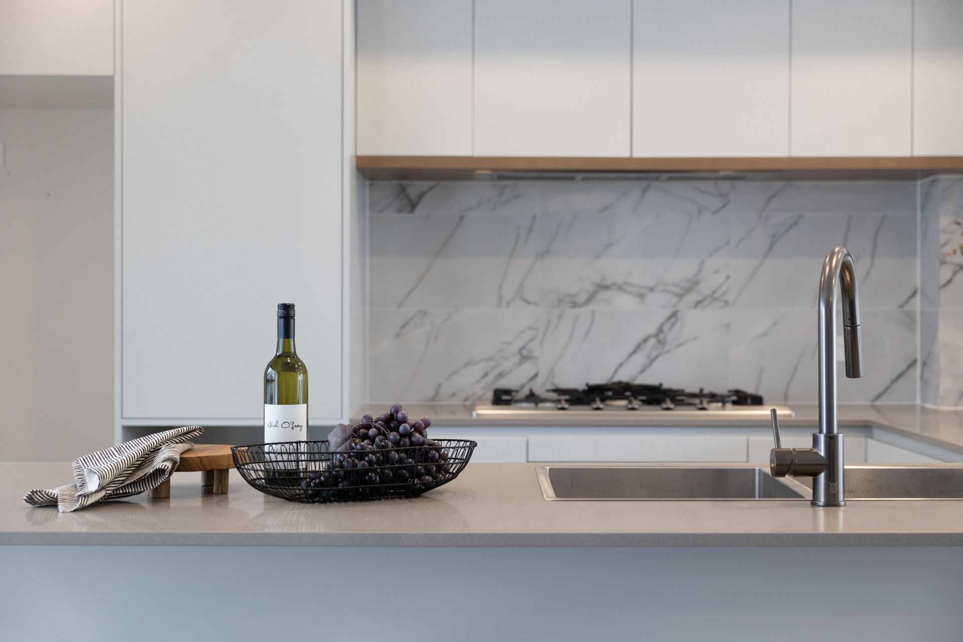 + Chef inspired kitchen with Miele appliances, tiled splash back and stone bench top