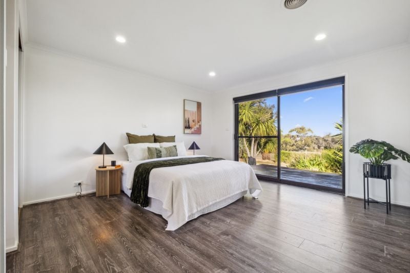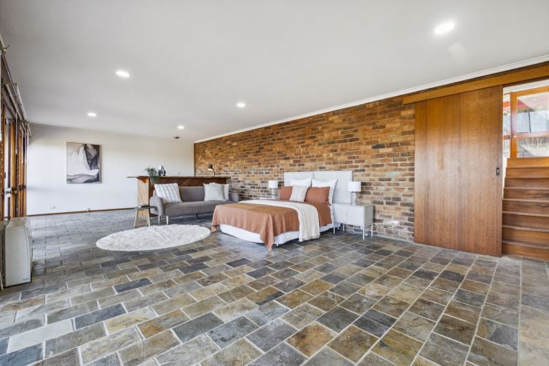 The master bedroom is a sanctuary with two built-in robes, an ensuite with a spa, and terrace access. The additional bedrooms feature built-in robes and share the main bathroom, complete with a free-standing bathtub and separate toilet. An oversized rumpus room, complete with a Huon pine bar and ensuite, offers versatility as either a 4th bedroom or entertainment hub, with direct courtyard access.