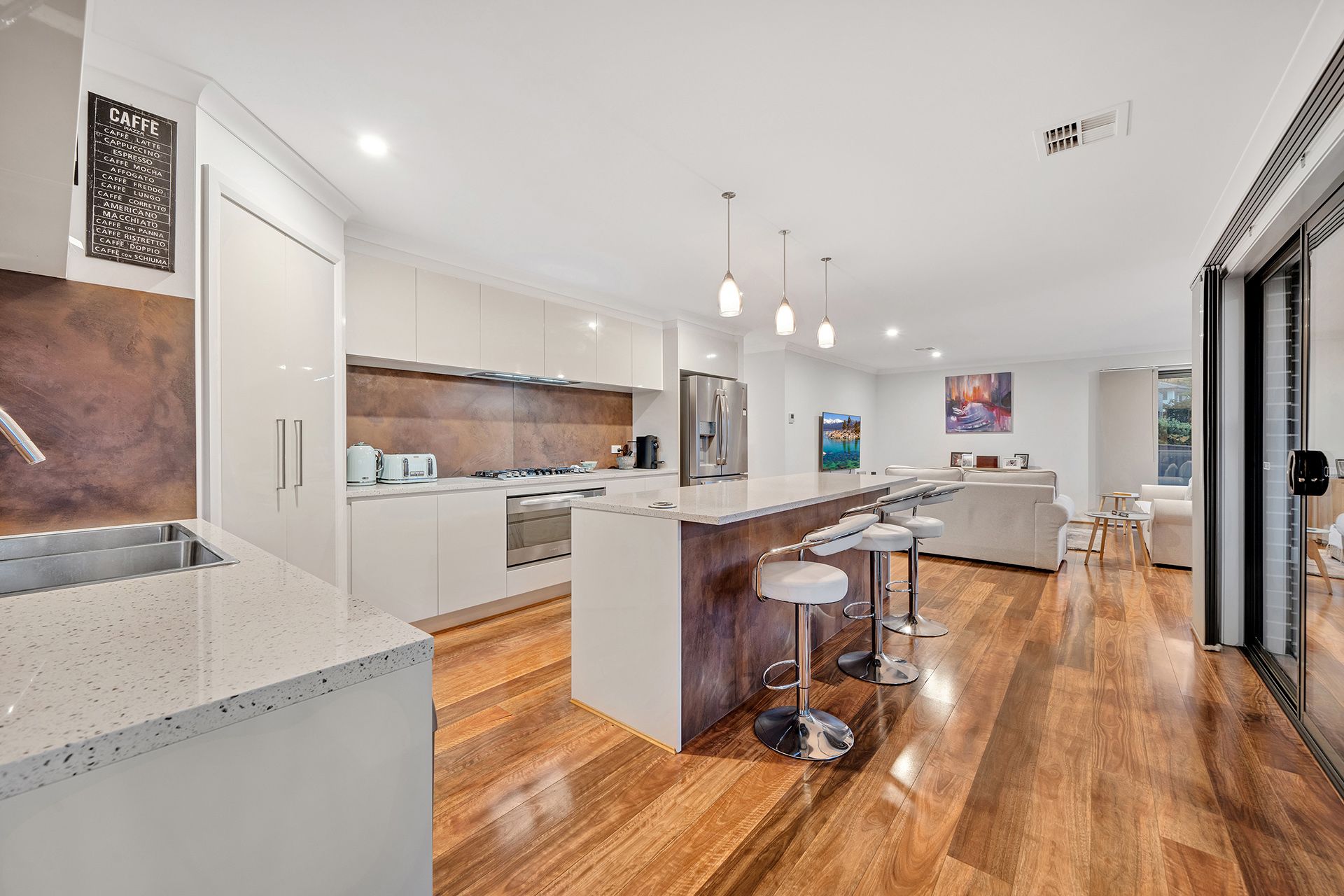 A multi-generational home perfect for growing or extended families. Featuring a functional kitchen with 3 metre island bench, walk in pantry, quality 900mm appliances including externally ducted range hood, 6 burner gas cook top, oven, Bosch dishwasher and double bowl sink.