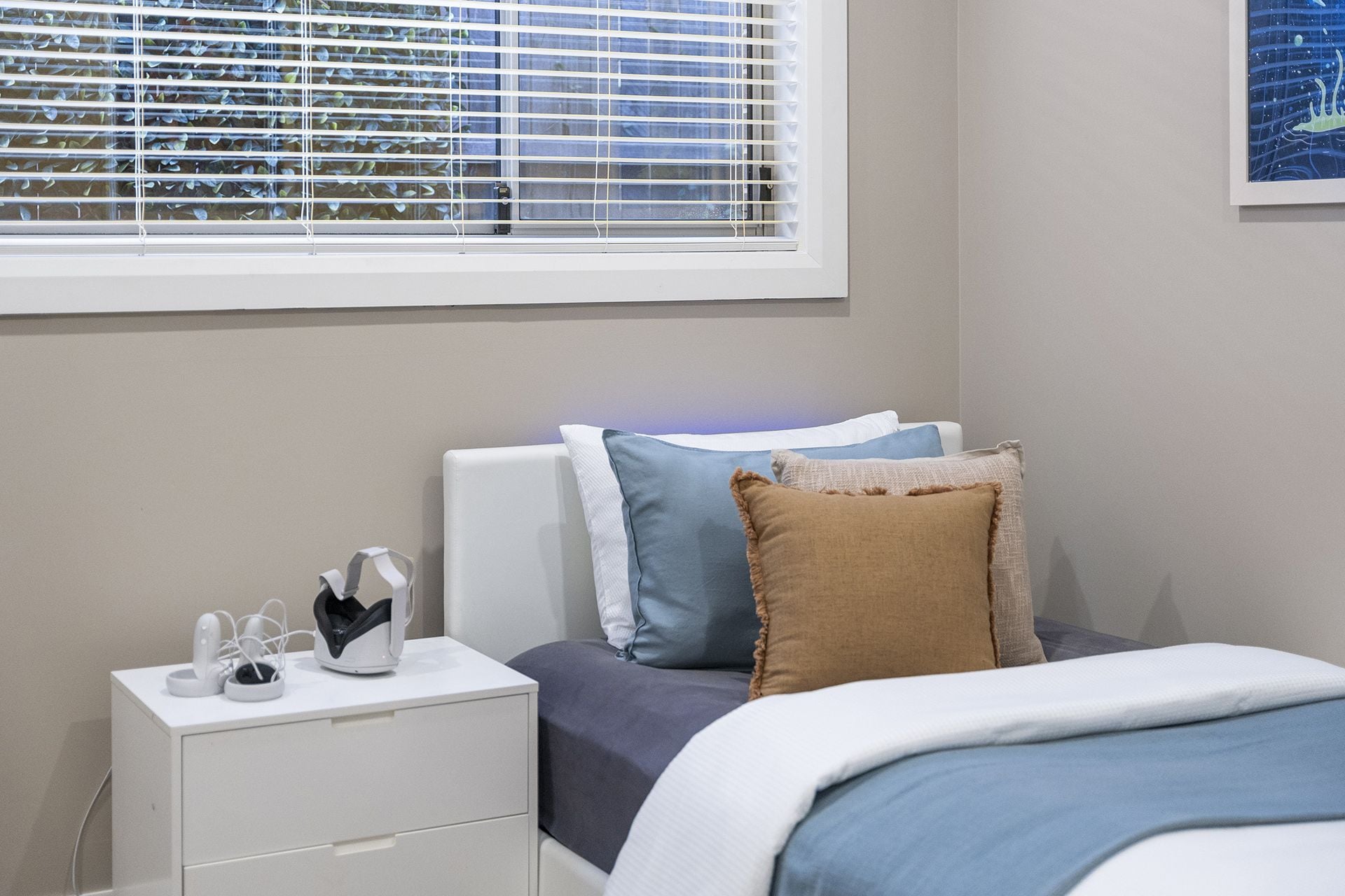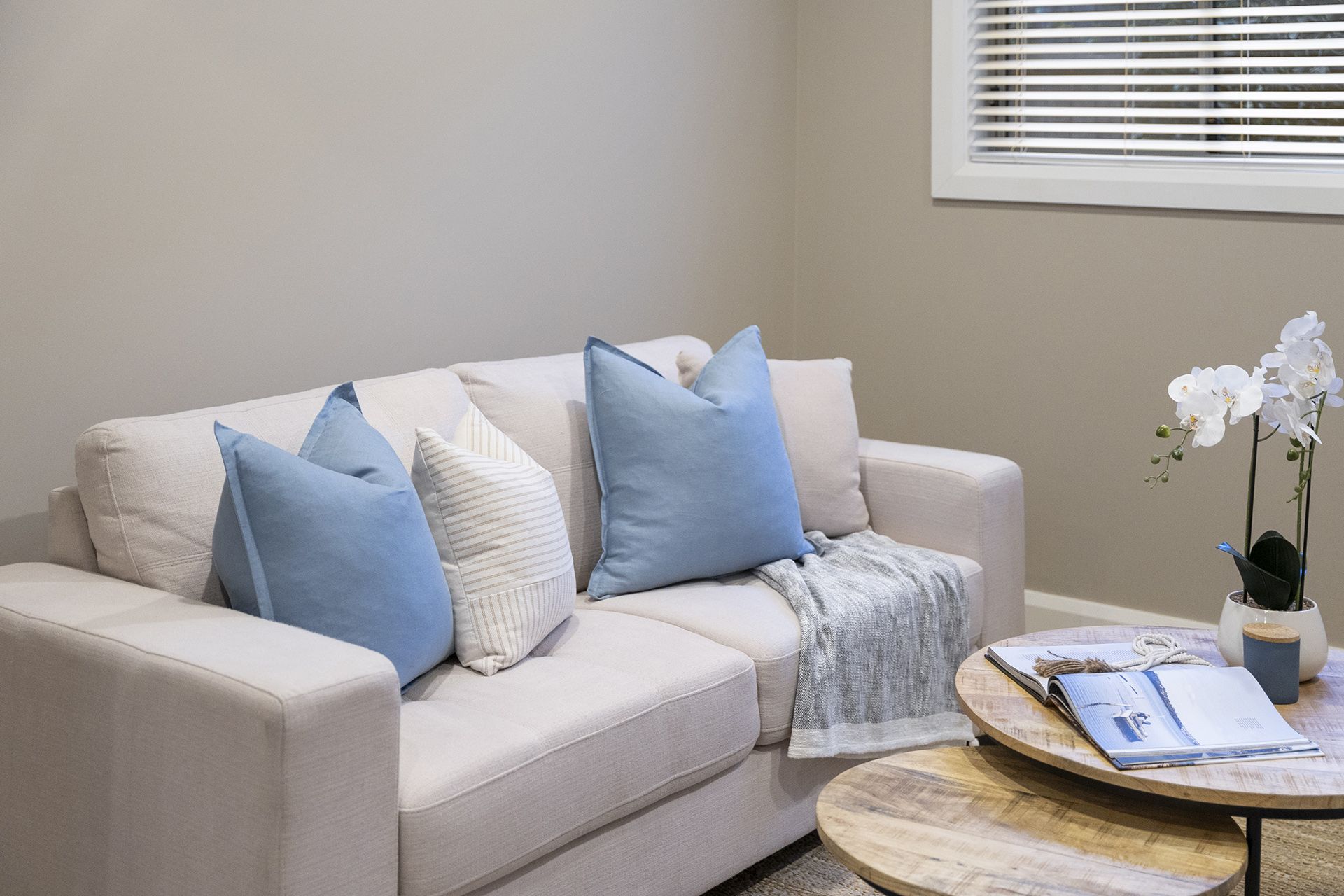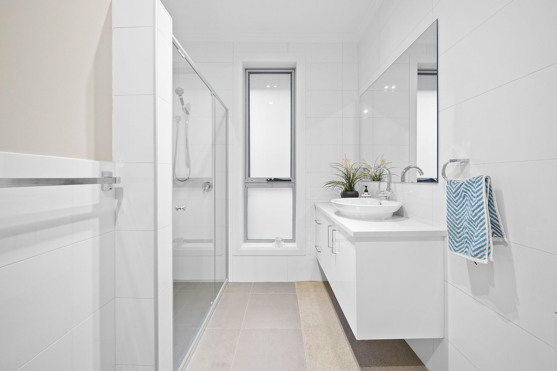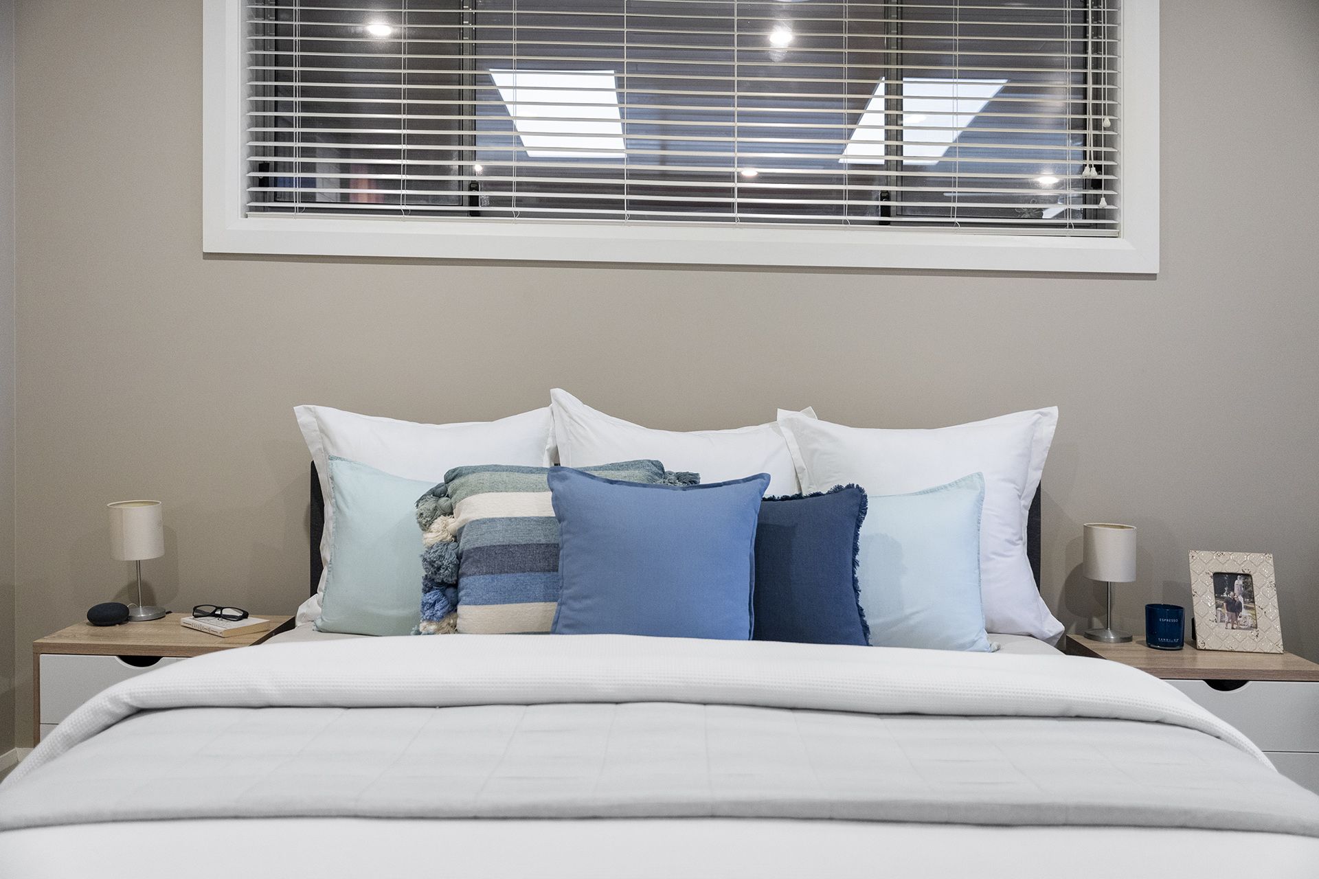 The home is designed for comfort and ease with tiled floors on a heated slab, providing warmth during cooler months, and LED lighting throughout. The Aussievac ducted vacuum system adds an extra layer of convenience, making cleaning a breeze.