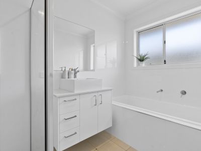 + Three spacious bedrooms (Two also north facing) with built-in robes and services by the main bathroom with a bathtub, shower, and separate toilet