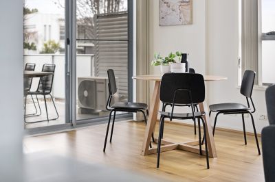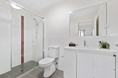 Light and sunny, the generously-sized bedroom comes complete with mirrored doors on the built-in robe and direct access to the balcony. The spacious, well-appointed bathroom offers a shower, toilet, smart modern fittings.