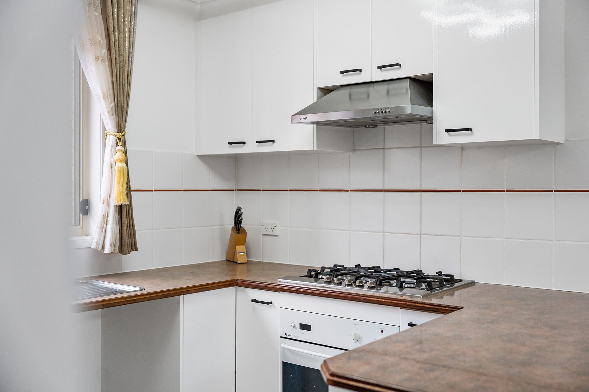 A space efficient kitchen allows easy meal preparation without feeling separated from others.