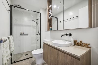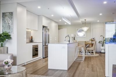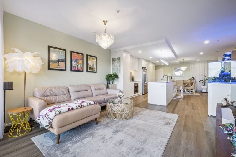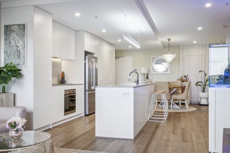 + Stylish hybrid timber flooring throughout living areas, plush carpet in bedrooms