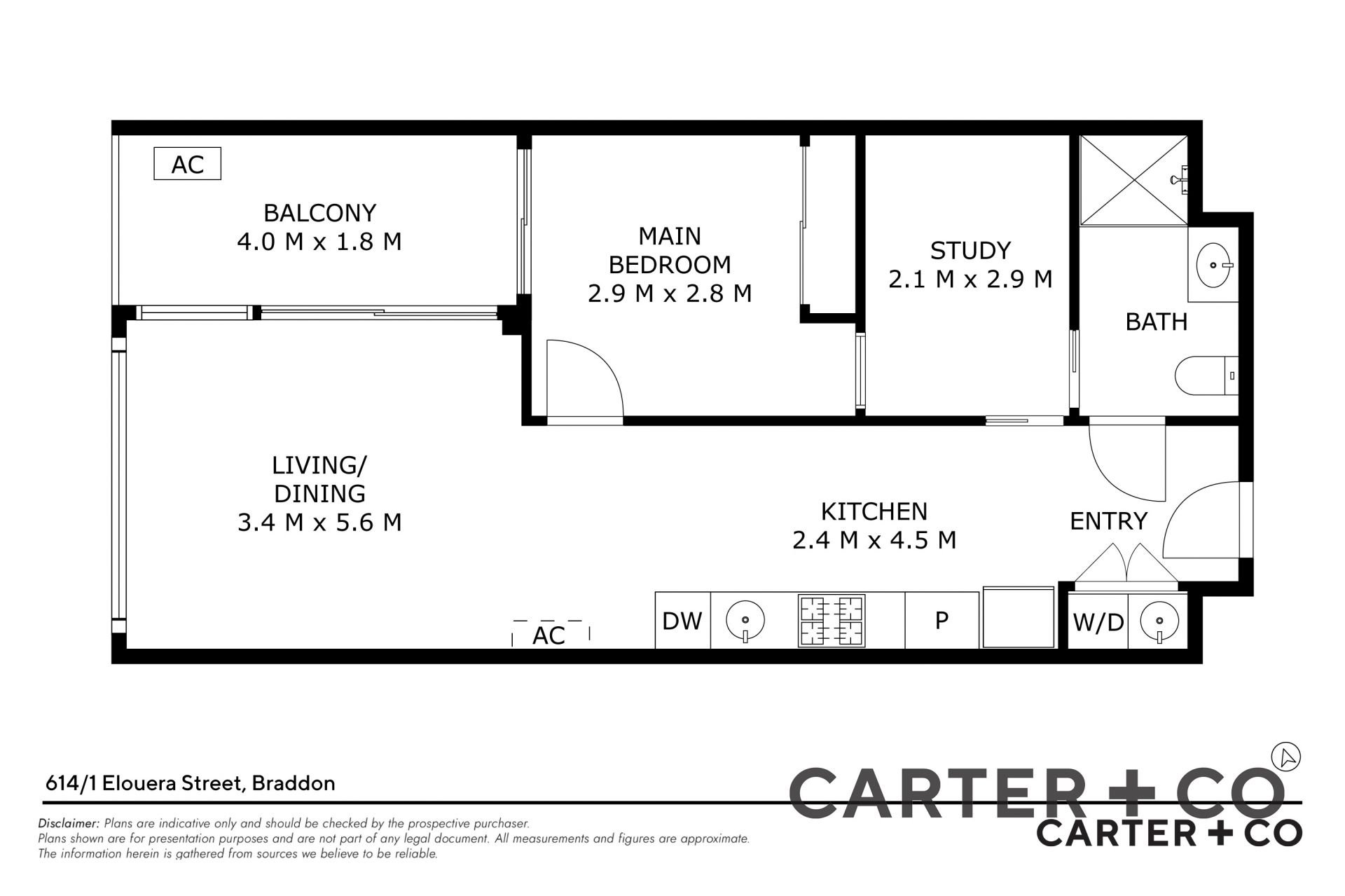 With 61m² of internal space and an 8m² balcony, the floorplan offers flexibility thanks to the additional study/second bedroom, which includes direct access to the bathroom.