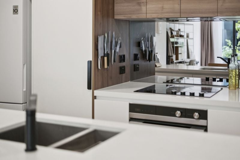 • Modern kitchen with stone benchtops, stainless steel appliances & ample storage