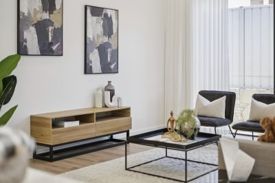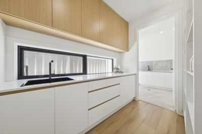 Thoughtful details are found throughout, including a powder room, a large laundry with ample storage, and 2.34m high doors. Year-round comfort is assured with zoned ducted reverse-cycle heating and cooling and double-glazed windows. Outdoor living is catered to with a covered alfresco entertaining area overlooking low-maintenance gardens, complete with a double garage for convenience.