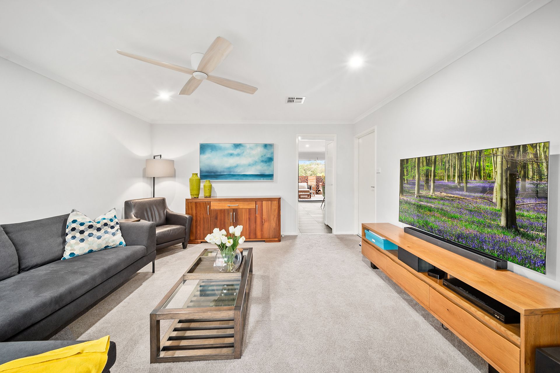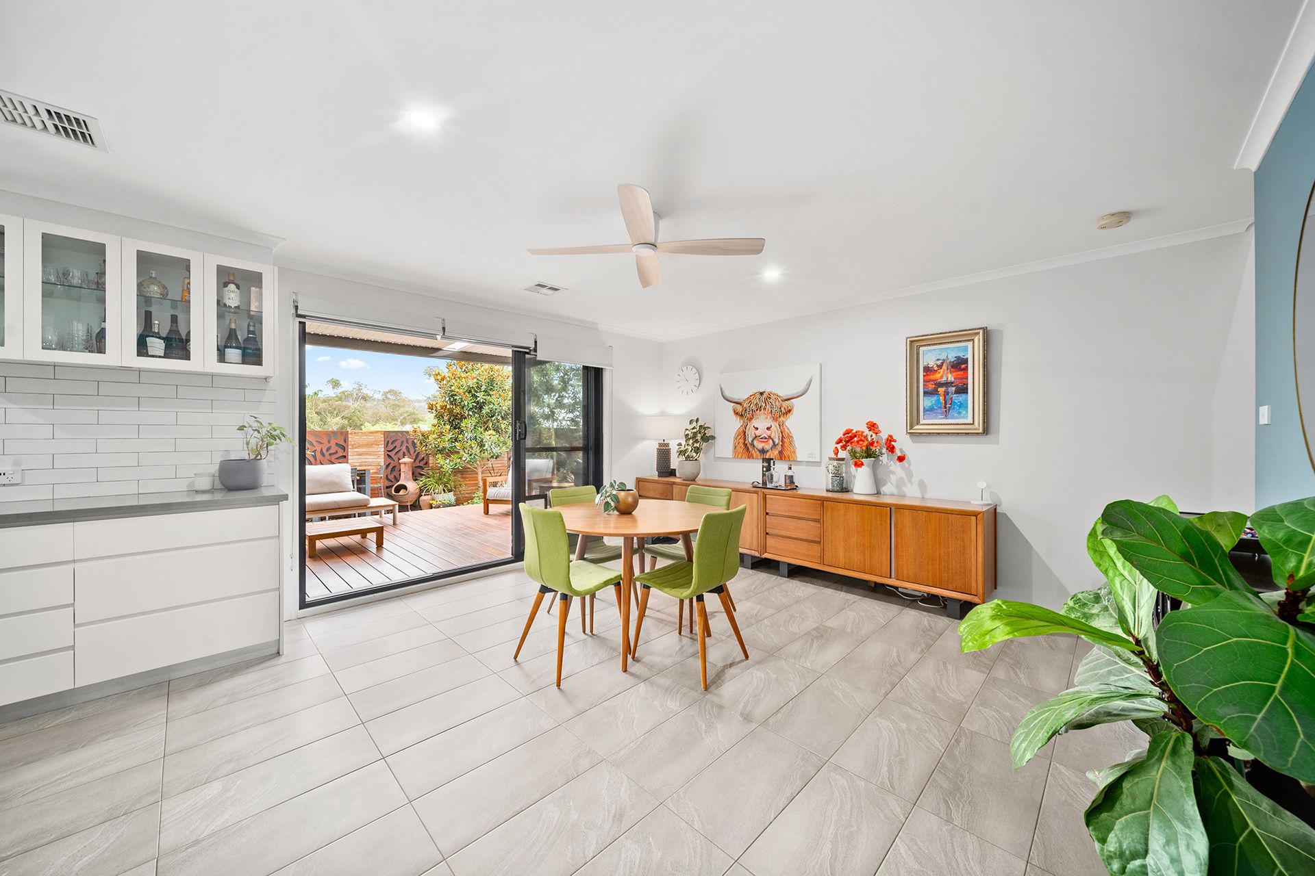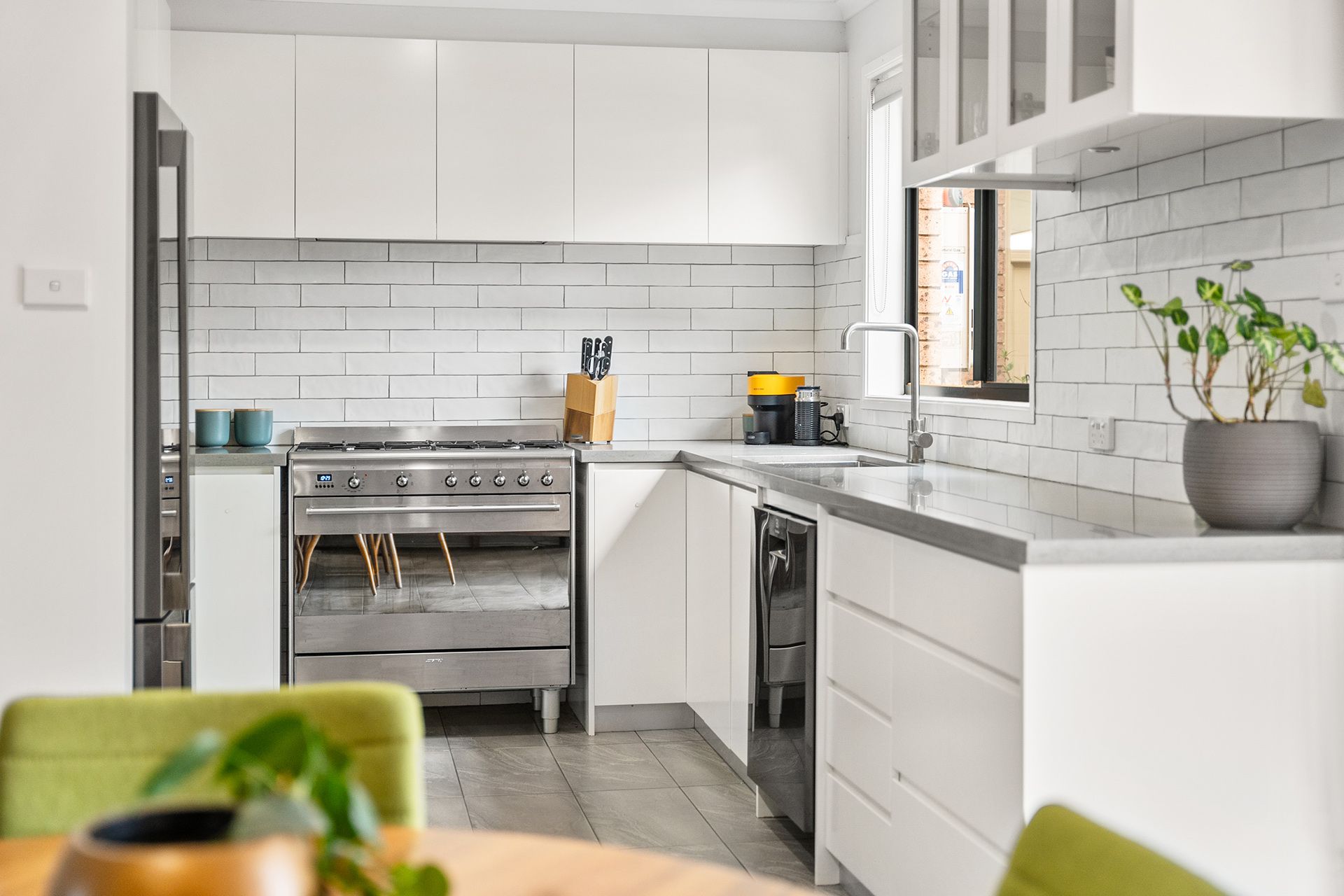 The property's open-plan living and dining area, complemented by a formal lounge at the front, is ideal for quiet relaxation or entertaining guests. The thoughtful floor plan ensures a seamless flow between spaces, maximizing both comfort and convenience. The renovated kitchen is a standout feature, boasting a high-end Smeg 5-burner gas cooktop, double electric oven, and a dishwasher. Generous cupboard space ensures plenty of storage, while the tiled flooring in the kitchen and dining areas makes for easy maintenance. The seamless connection between the kitchen, dining, and living spaces allows for easy interaction, whether preparing meals or hosting guests. Meanwhile, the carpeted lounge and bedrooms provide warmth and coziness.