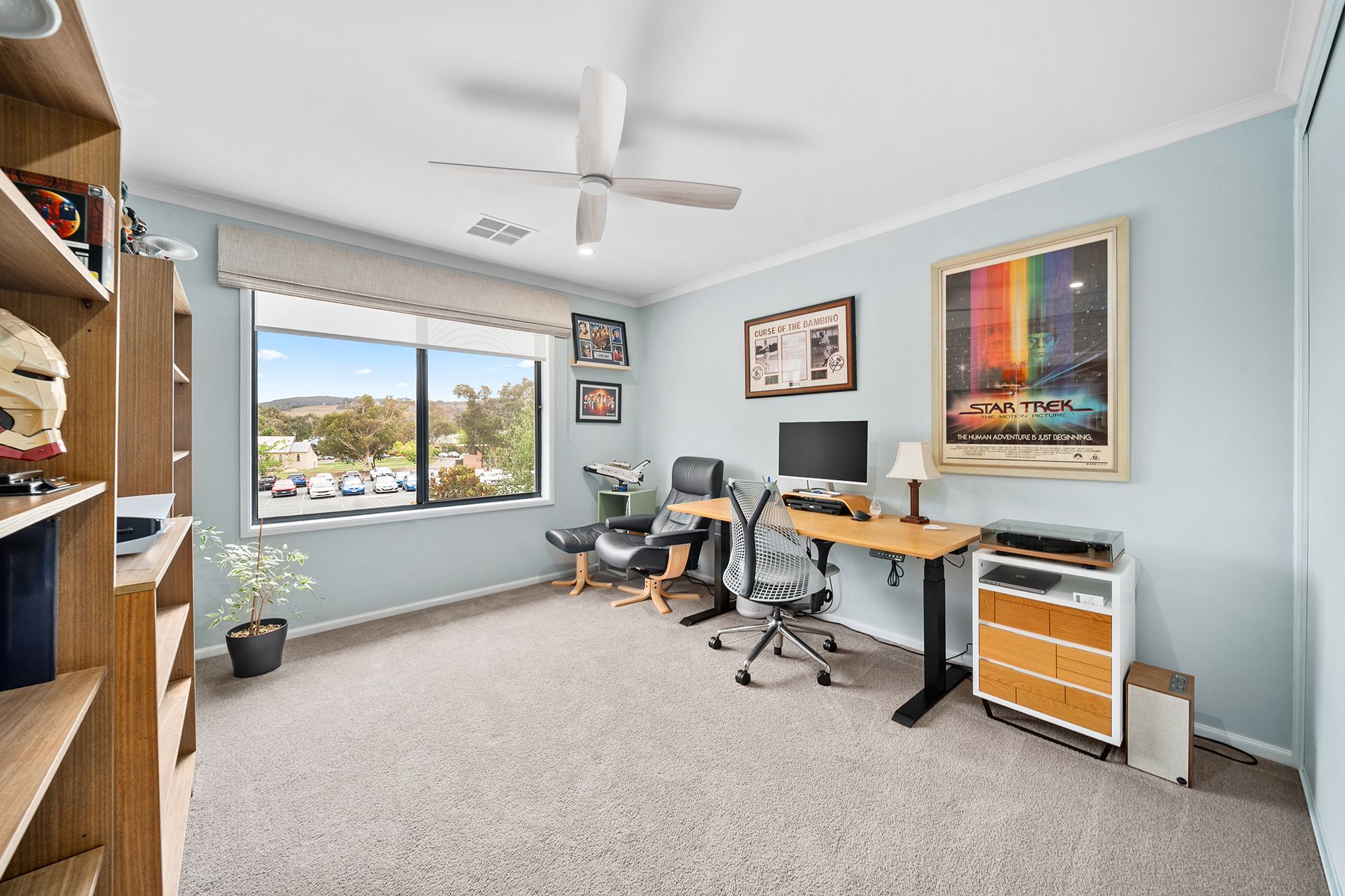 All bedrooms are designed with comfort in mind, featuring built-in robes, while the master suite offers a walk-in robe and a stylish barn door for added character. Both bathrooms are generously sized, providing practicality for growing families or shared living arrangements. A separate laundry with a powder room adds an extra layer of convenience, catering to busy lifestyles.