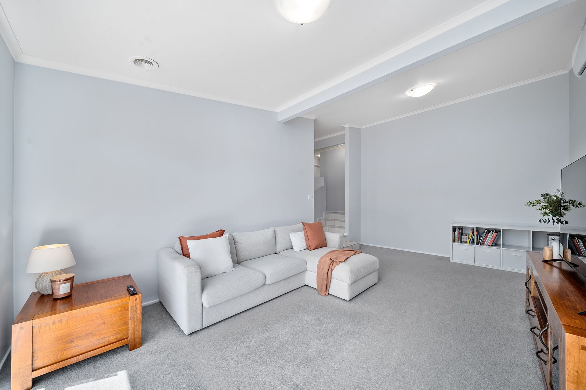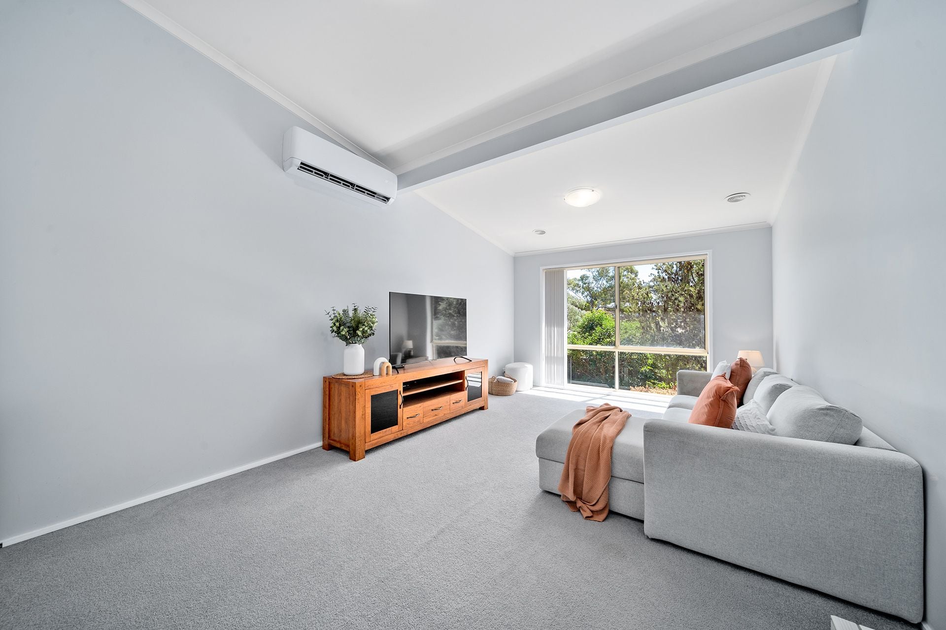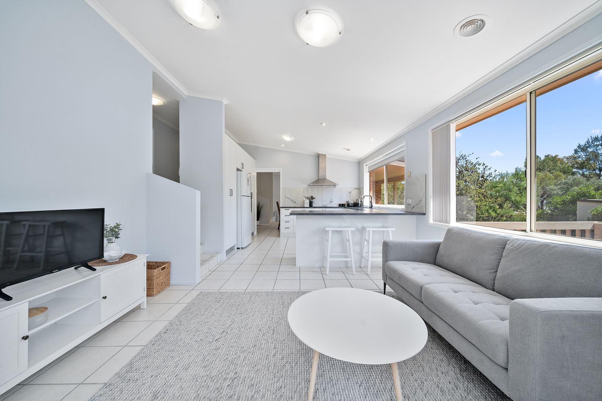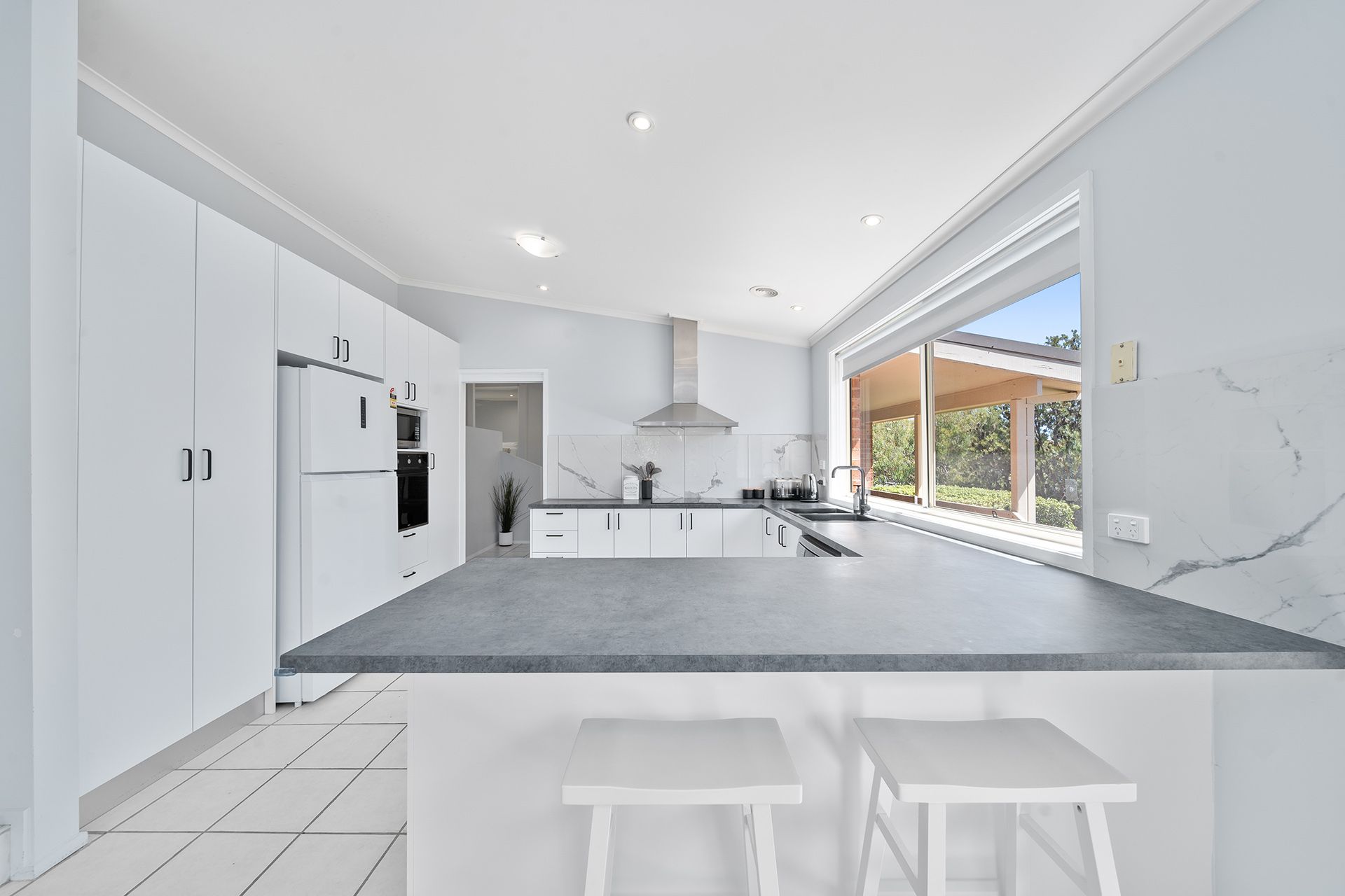 Designed to impress, the open-plan kitchen and dining area is bathed in natural light, creating an inviting space. The modern kitchen features a sleek benchtop, cooktop, oven, dishwasher, and a convenient breakfast bar, along with ample cabinetry for all your storage needs. With two separate living areas, there’s plenty of space for both entertaining and relaxation, while the tiled flooring throughout main living spaces ensures easy maintenance.