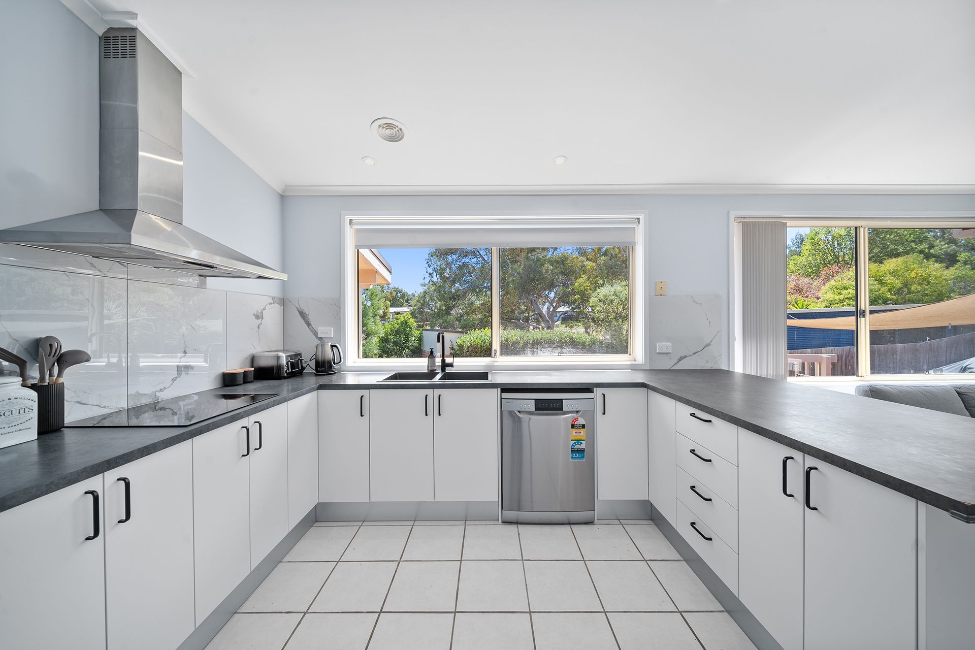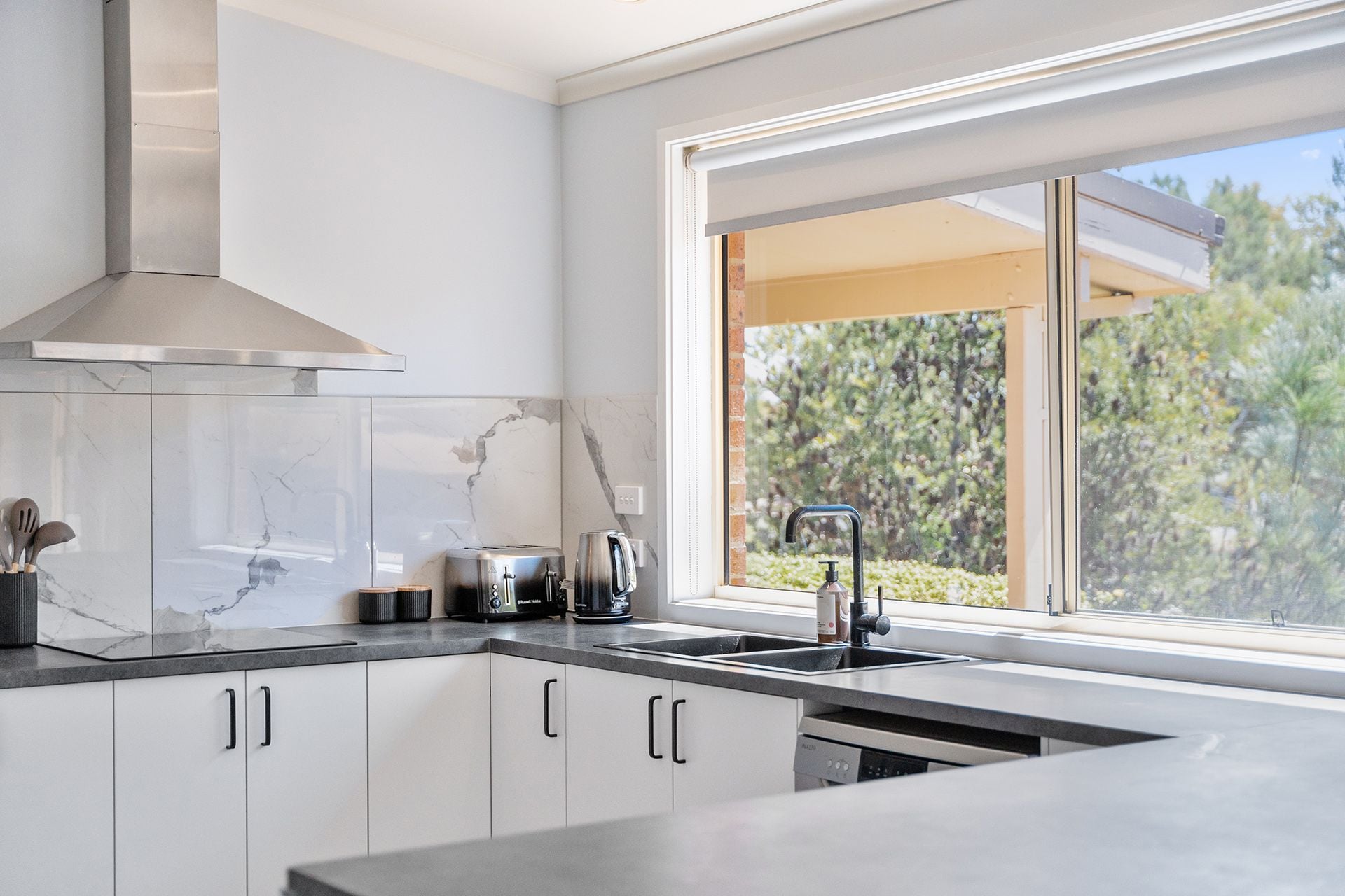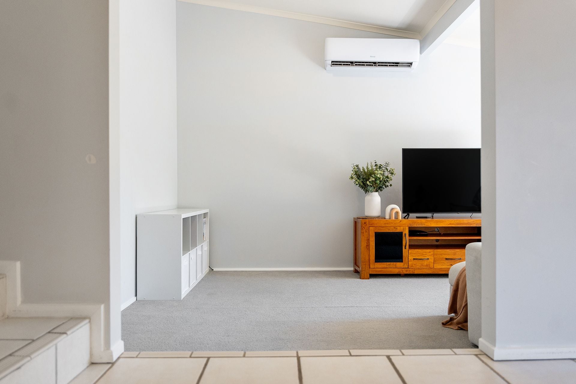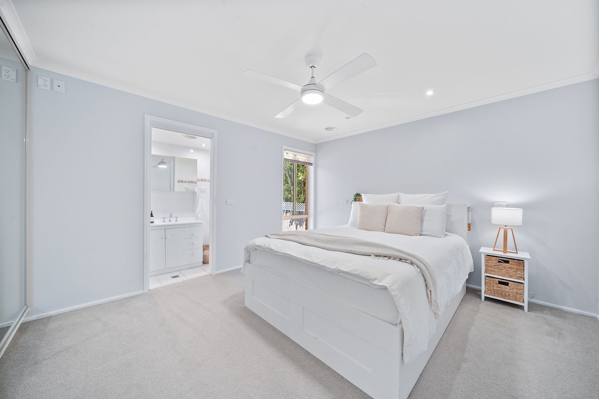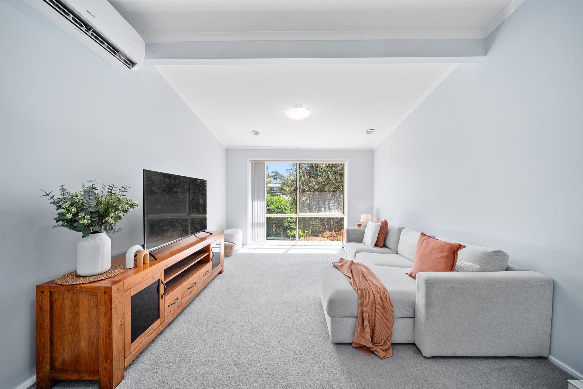 Designed to impress, the open-plan kitchen and dining area is bathed in natural light, creating an inviting space. The modern kitchen features a sleek benchtop, cooktop, oven, dishwasher, and a convenient breakfast bar, along with ample cabinetry for all your storage needs. With two separate living areas, there’s plenty of space for both entertaining and relaxation, while the tiled flooring throughout main living spaces ensures easy maintenance.