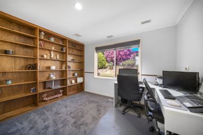 The oversized master suite is a sanctuary of its own, boasting a semi walk-in robe and ensuite for your utmost convenience. Three generously sized bedrooms upstairs feature built-in robes, while a spacious fifth bedroom or study downstairs offers versatility and charm with built-in bookshelves.