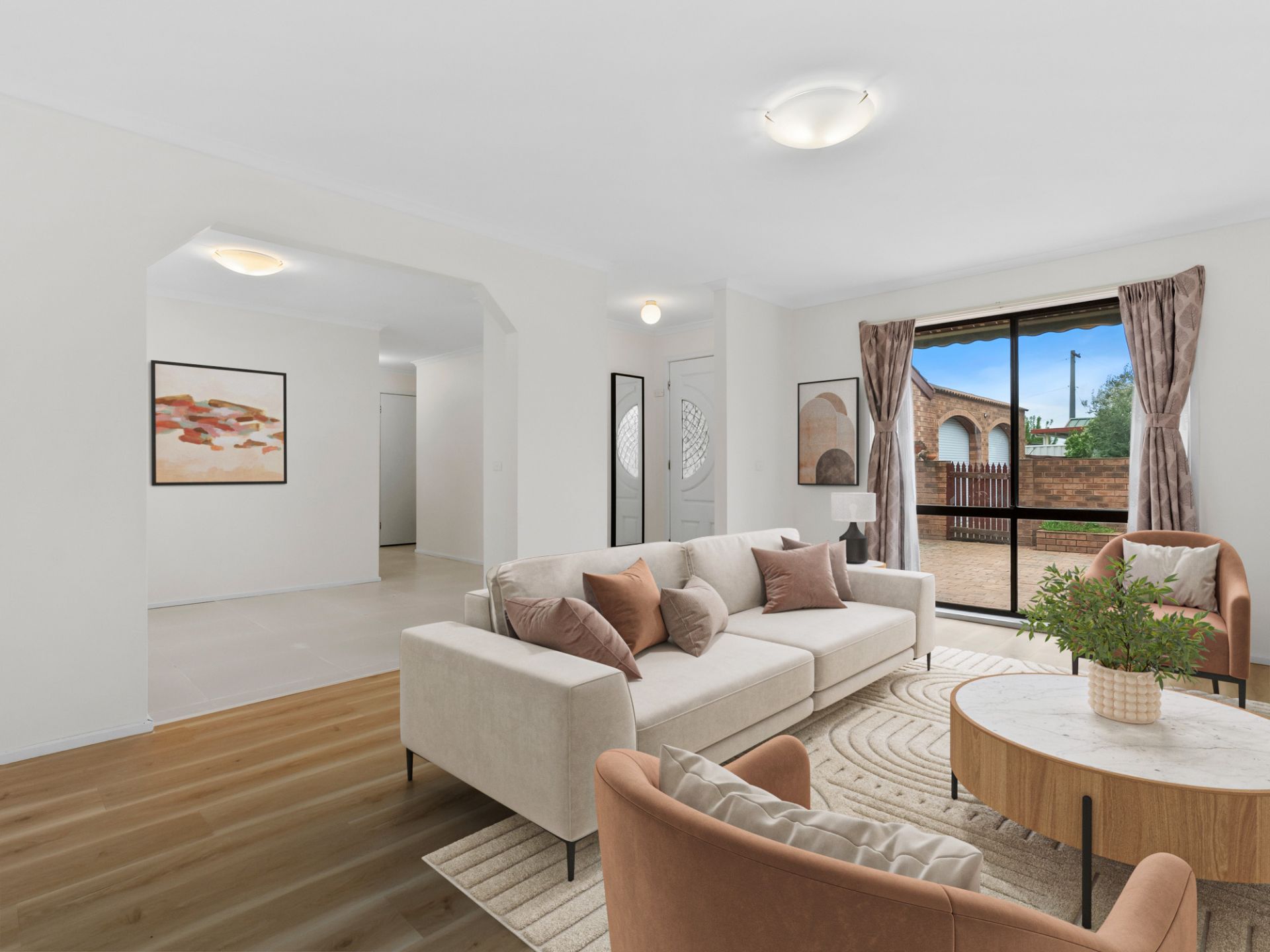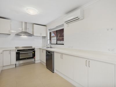 Step inside to be greeted by a fresh, light-filled interior featuring new paint and flooring throughout. The heart of the home is the open-plan living and dining area, which flows seamlessly to the updated kitchen. Here, you'll find a stunning stone benchtop, quality appliances, and ample storage, making meal preparation a joy.