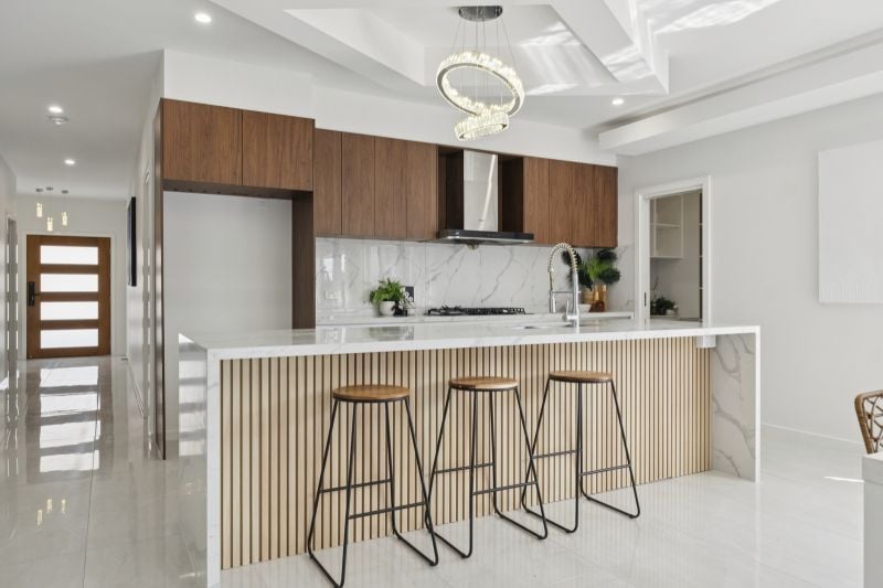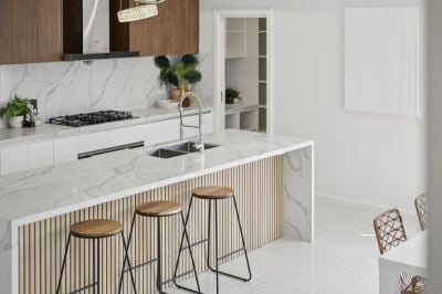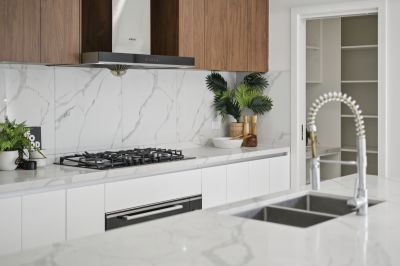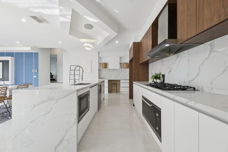 + Large open kitchen with 40mm stone benchtops, soft-close drawers, and a walk-in pantry.
