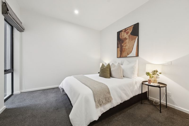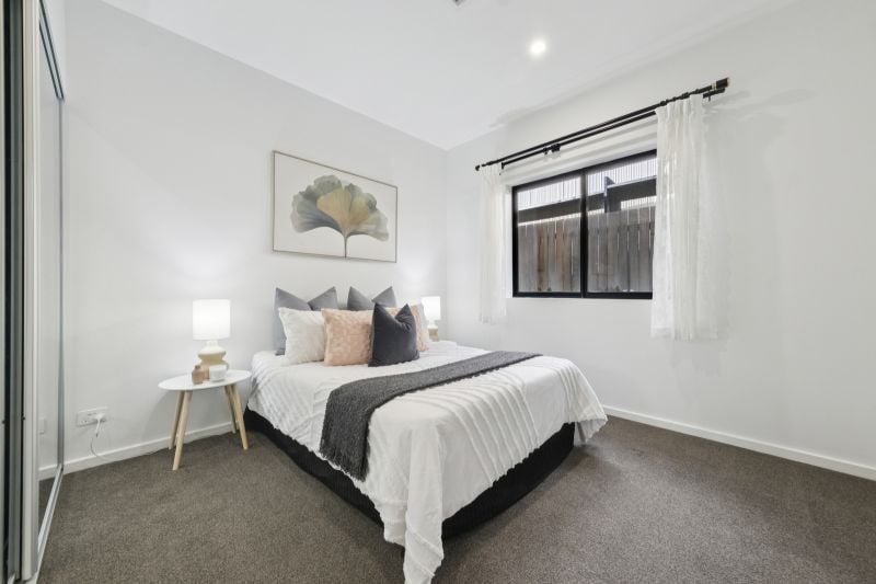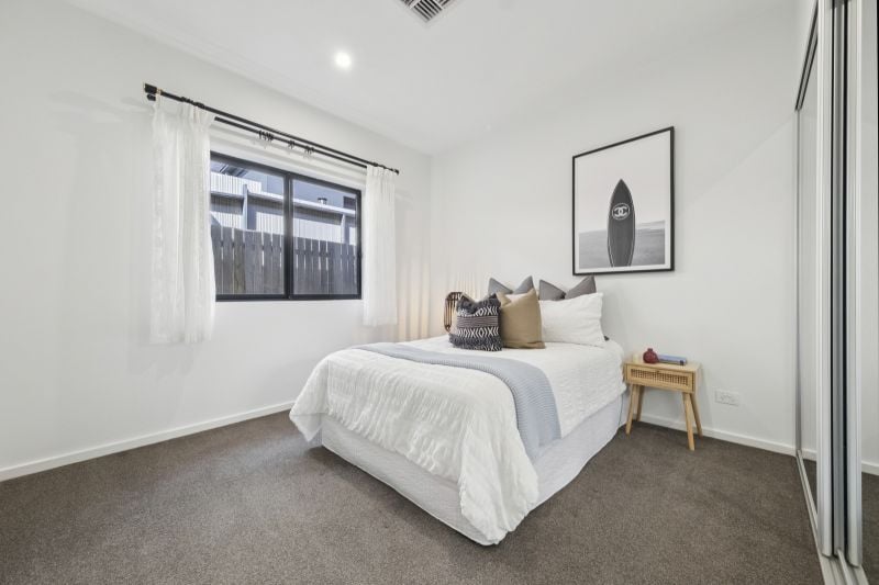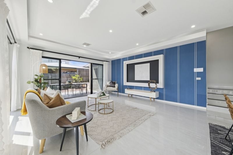 A large laundry room with ample storage, zoned ducted reverse cycle heating and cooling, double-glazed windows, and solar panels provide both comfort and efficiency. For peace of mind, security is bolstered by a video intercom, camera system, and a Samsung smart door lock.