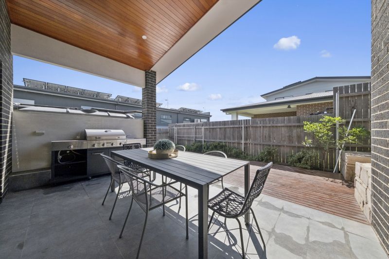 The heart of this home is its gourmet kitchen, featuring a vast 40mm stone benchtop, soft-close cabinetry, walk-in pantry, and a suite of Bosch appliances, ensuring culinary exploits are a pleasure. A convenient study nook adds to the intelligent design, allowing for a perfect work-from-home space.