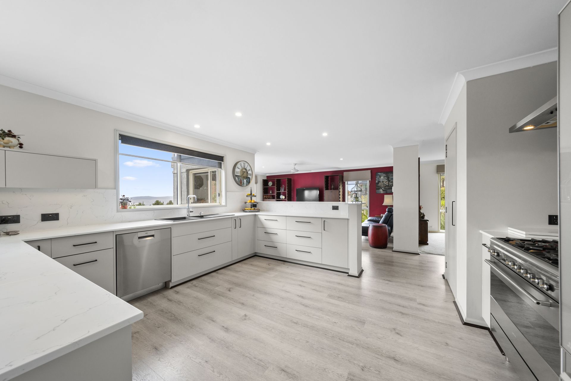 The newly renovated, open-plan kitchen, set between the family and meals areas, takes in sweeping views and flows seamlessly to a large timber deck-ideal for hosting friends or relaxing with family in a stunning setting. Crafted with thoughtful details and superior finishes, this residence exudes sophistication in every corner.