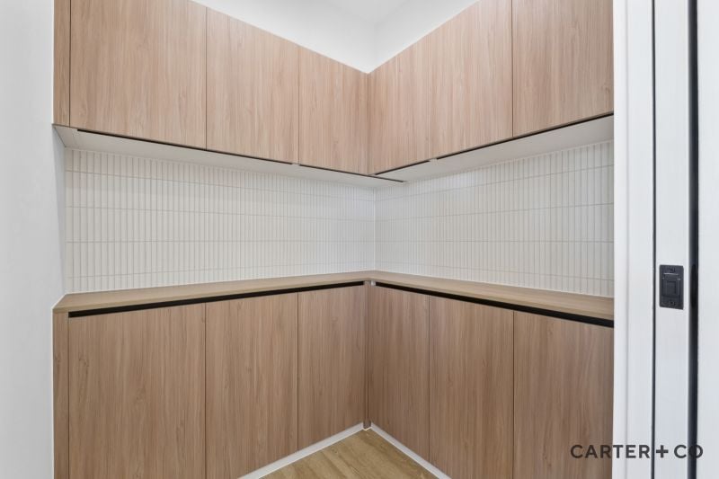 The kitchen is both stylish and functional. Large bench top, walkin pantry, induction cooktop, Fisher & Paykel appliances are just some of the features.